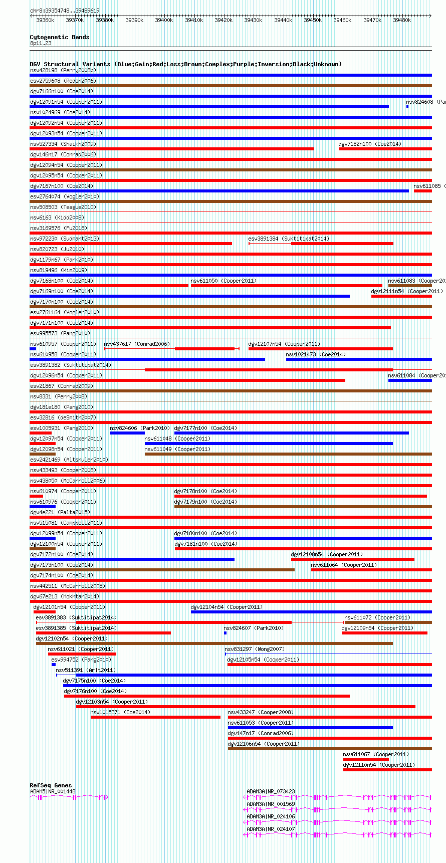 Variant DetailsVariant: nsv1026449| Internal ID | 19115667 | | Landmark | | | Location Information | | | Cytoband | 8p11.22 | | Allele length | | Assembly | Allele length | | hg38 | 134872 | | hg19 | 134872 | | hg18 | 134872 |
