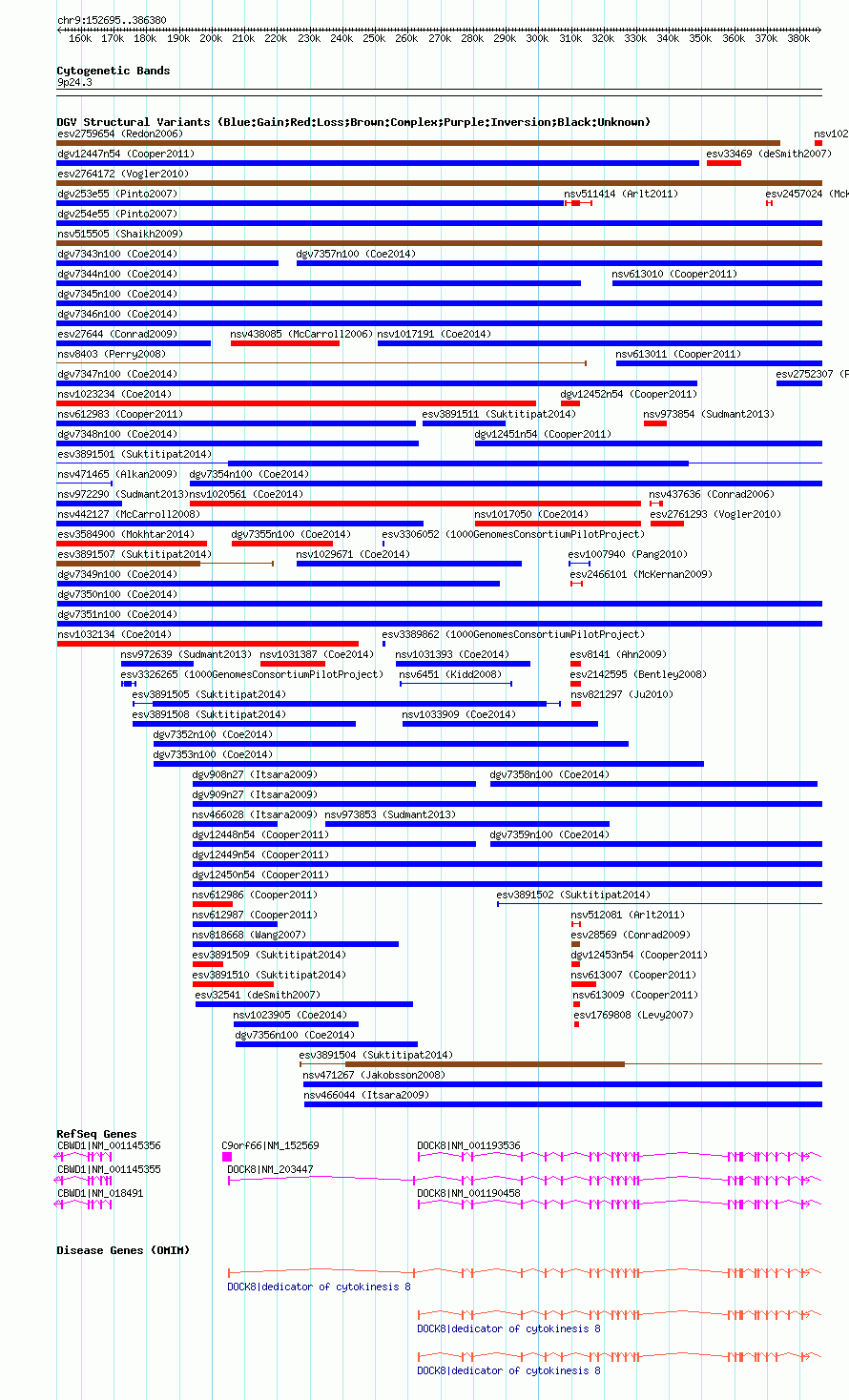 Variant DetailsVariant: nsv1026550| Internal ID | 19115768 | | Landmark | | | Location Information | | | Cytoband | 9p24.3 | | Allele length | | Assembly | Allele length | | hg38 | 233686 | | hg19 | 233686 | | hg18 | 233686 |