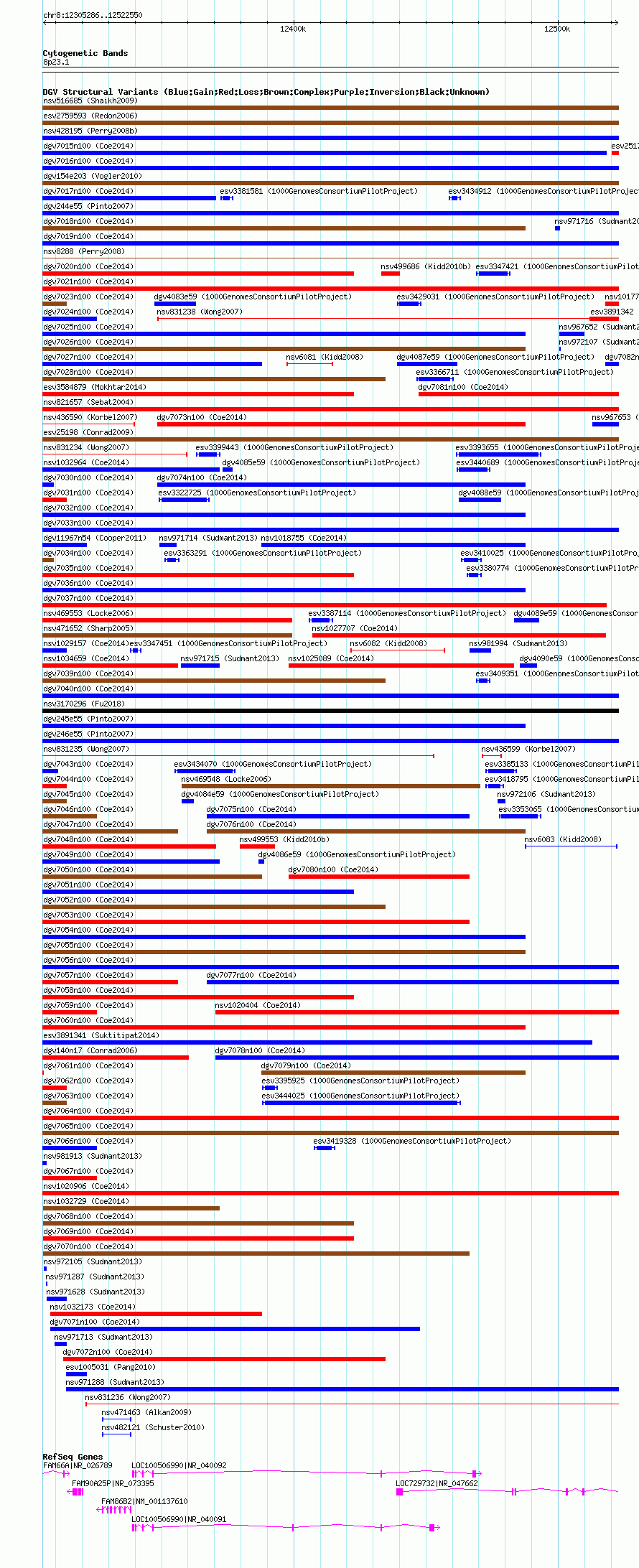 Variant DetailsVariant: nsv1026792| Internal ID | 19116010 | | Landmark | | | Location Information | | | Cytoband | 8p23.1 | | Allele length | | Assembly | Allele length | | hg38 | 217265 | | hg19 | 217265 | | hg18 | 217265 |