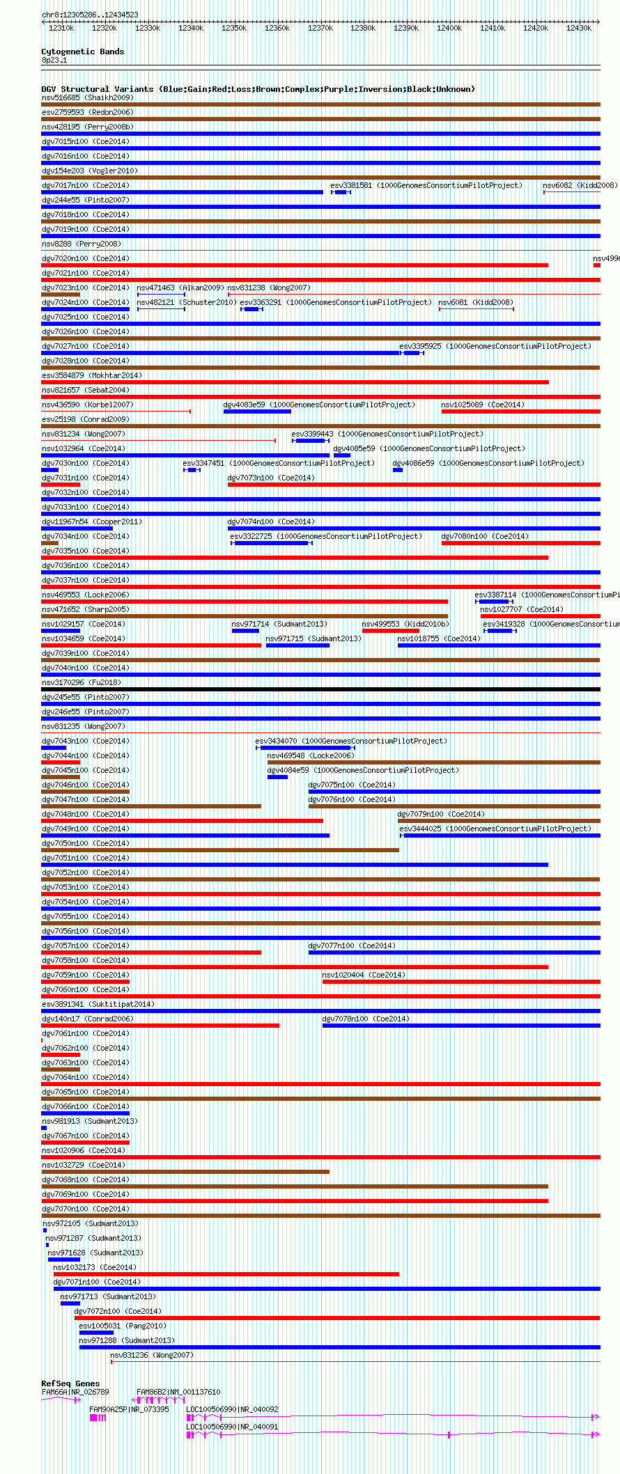 Variant DetailsVariant: nsv1027017 | Internal ID | 19116236 | | Landmark | | | Location Information | | | Cytoband | 8p23.1 | | Allele length | | Assembly | Allele length | | hg38 | 129238 | | hg19 | 129238 | | hg18 | 129238 |
