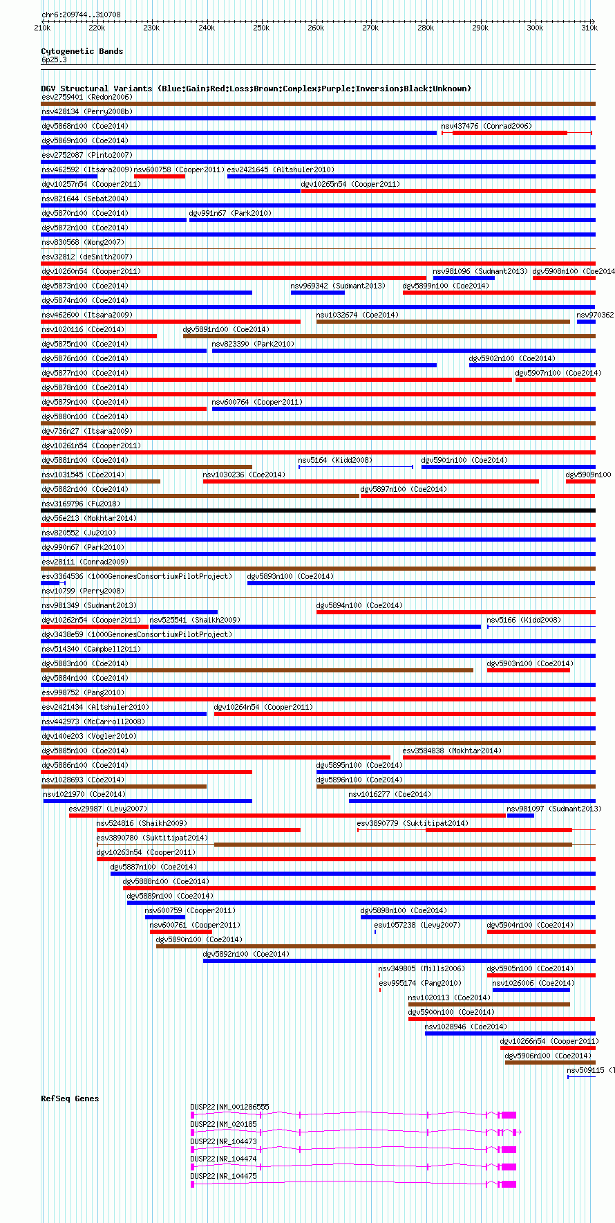 Variant DetailsVariant: nsv1027524| Internal ID | 19116743 | | Landmark | | | Location Information | | | Cytoband | 6p25.3 | | Allele length | | Assembly | Allele length | | hg38 | 100965 | | hg19 | 100965 | | hg18 | 100965 |