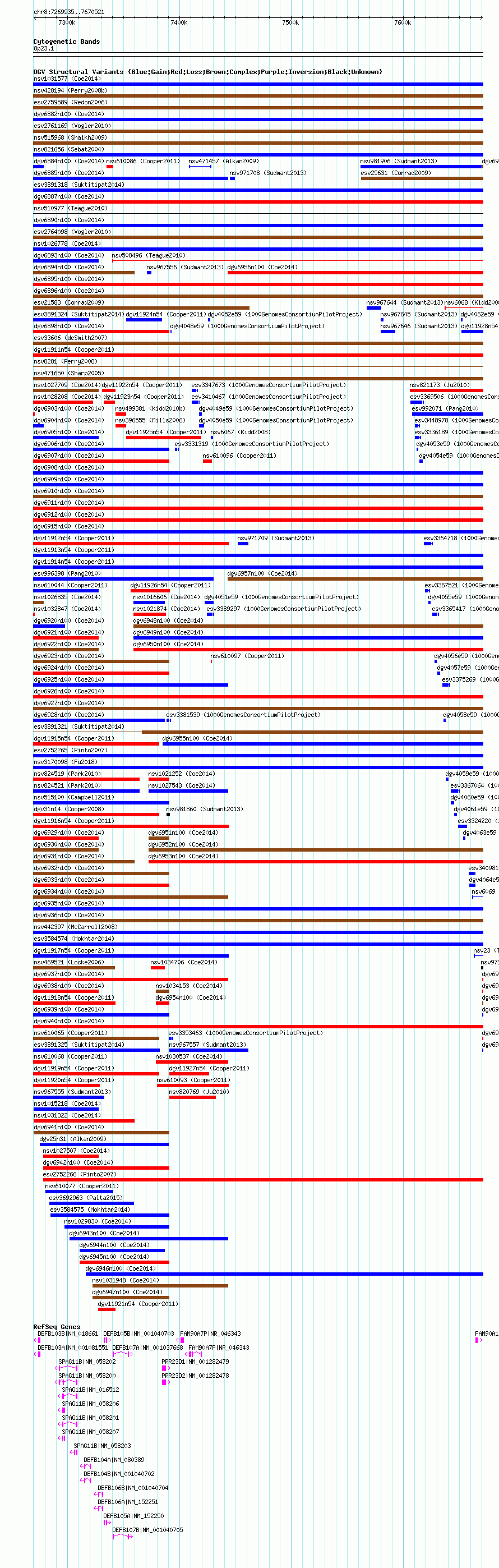 Variant DetailsVariant: nsv1028145| Internal ID | 19117363 | | Landmark | | | Location Information | | | Cytoband | 8p23.1 | | Allele length | | Assembly | Allele length | | hg38 | 350587 | | hg19 | 350587 | | hg18 | 400587 |