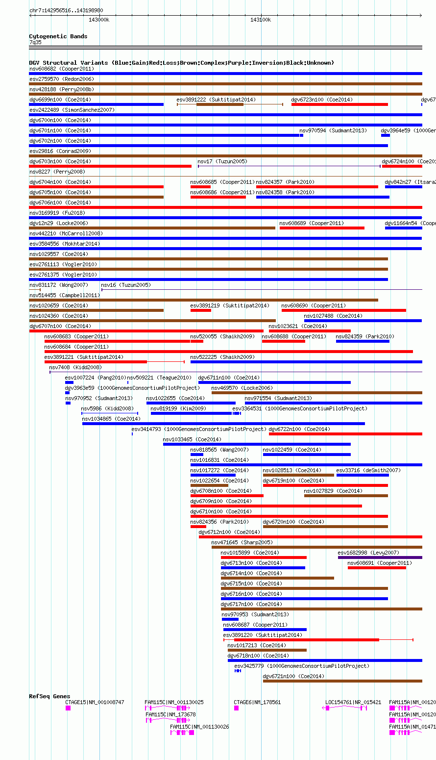 Variant DetailsVariant: nsv1028413| Internal ID | 19117631 | | Landmark | | | Location Information | | | Cytoband | 7q35 | | Allele length | | Assembly | Allele length | | hg38 | 321654 | | hg19 | 321654 | | hg18 | 242465 |