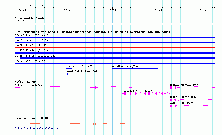 Variant DetailsVariant: nsv1028947| Internal ID | 19118166 | | Landmark | | | Location Information | | | Cytoband | 6p21.31 | | Allele length | | Assembly | Allele length | | hg38 | 44021 | | hg19 | 44021 | | hg18 | 44021 |
