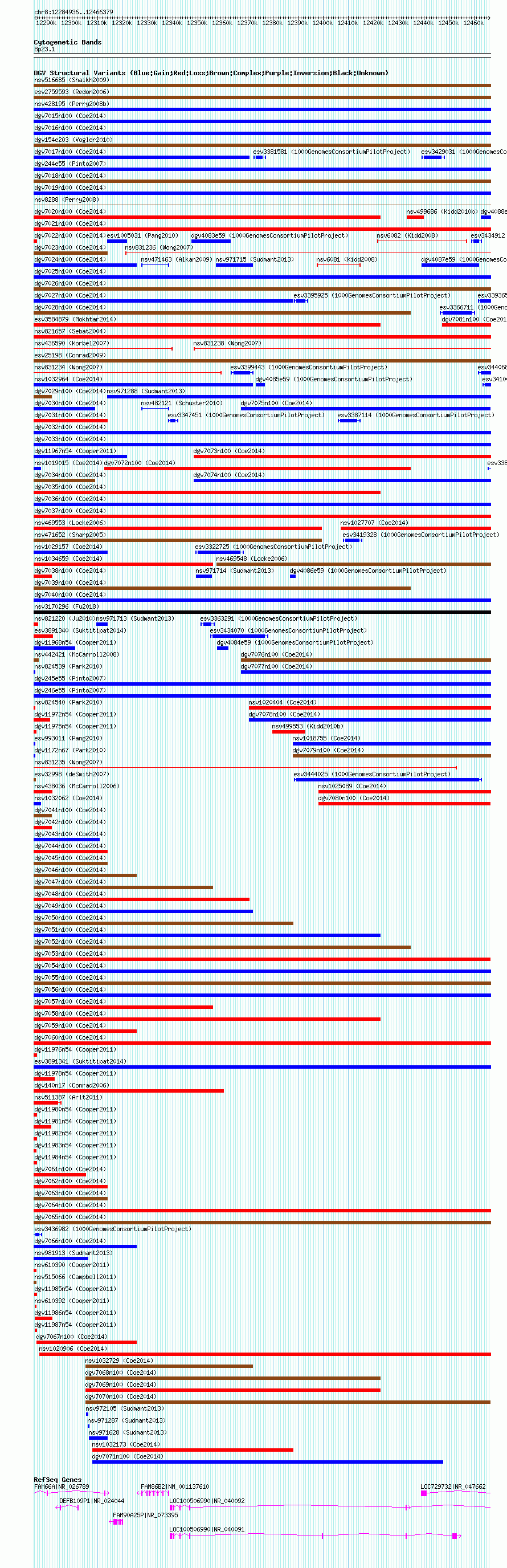 | | Variant Type | CNV loss | | Copy Number | | | Allele State | | | Allele Origin | | | Probe Count | | | Validation Flag | | | Merged Status | M | | Merged Variants | dgv7053n100 | | Supporting Variants | nssv3664879 | | Samples | | | Known Genes | DEFB109P1, FAM66A, FAM86B2, FAM90A25P, LOC100506990, LOC729732 | | Method | SNP array | | Analysis | Affymetrix SNP array copy number analysis | | Platform | Affymetrix SNP Array 6.0 | | Comments | | | Reference | Coe_et_al_2014 | | Pubmed ID | 25217958 | | Accession Number(s) | nsv1029226