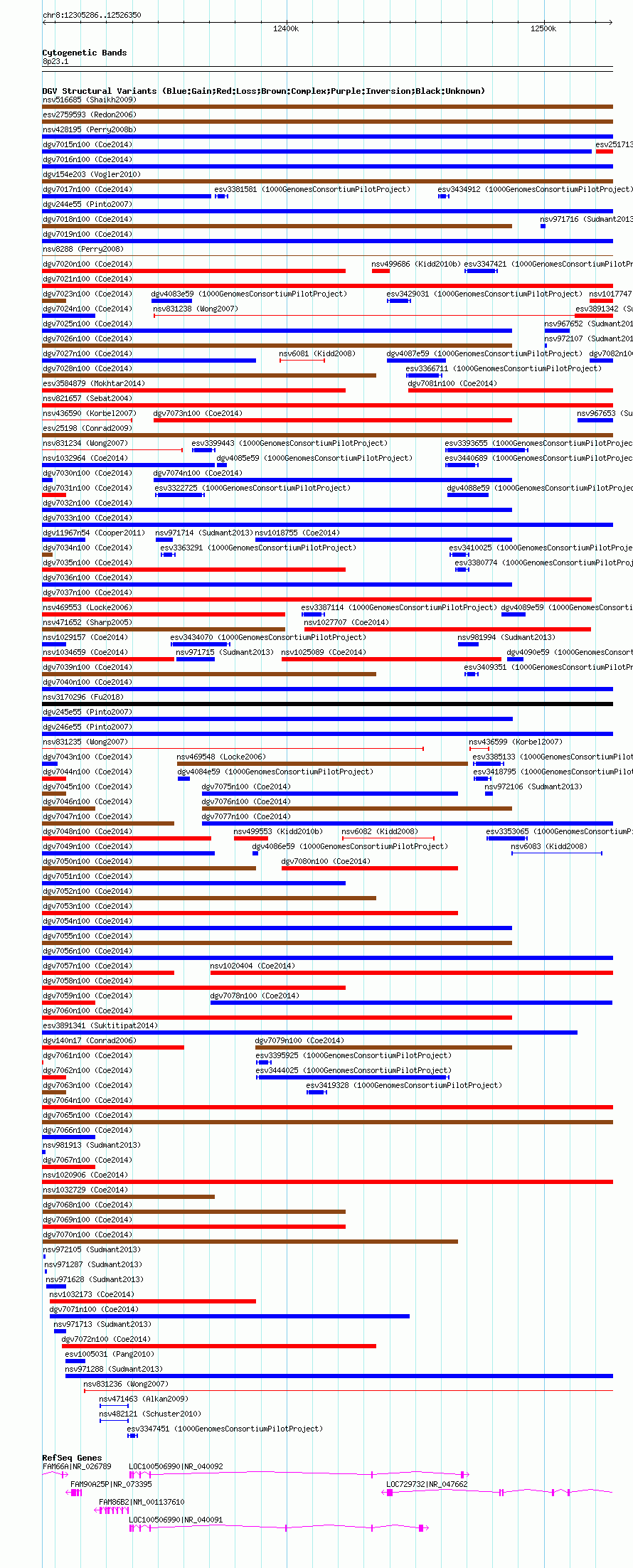 Variant DetailsVariant: nsv1029393| Internal ID | 19118612 | | Landmark | | | Location Information | | | Cytoband | 8p23.1 | | Allele length | | Assembly | Allele length | | hg38 | 221065 | | hg19 | 221065 | | hg18 | 221065 |