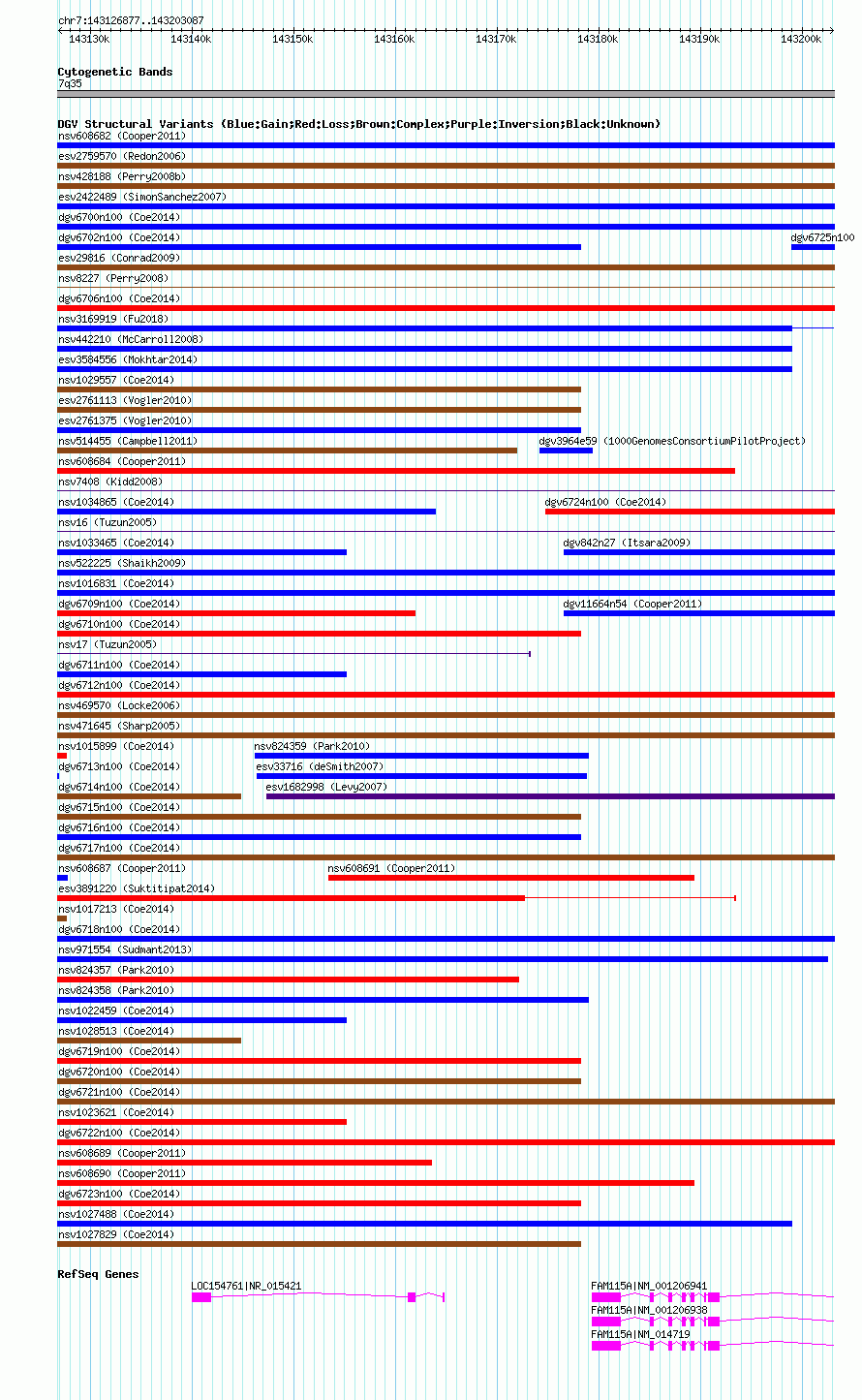 Variant DetailsVariant: nsv1029770| Internal ID | 19118989 | | Landmark | | | Location Information | | | Cytoband | 7q35 | | Allele length | | Assembly | Allele length | | hg38 | 76211 | | hg19 | 76211 | | hg18 | 76211 |
