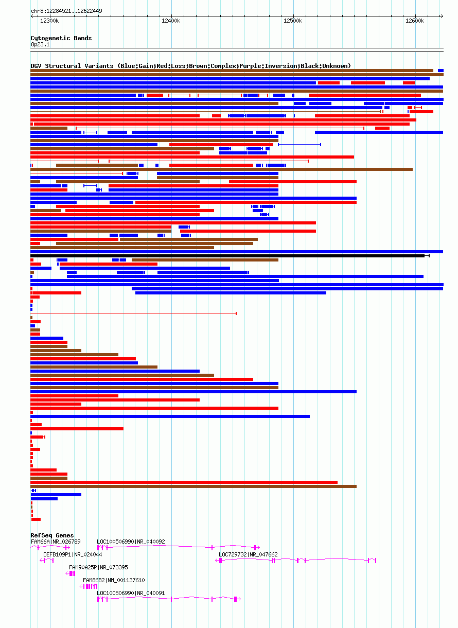 Variant DetailsVariant: nsv1030251| Internal ID | 19119470 | | Landmark | | | Location Information | | | Cytoband | 8p23.1 | | Allele length | | Assembly | Allele length | | hg38 | 337929 | | hg19 | 337929 | | hg18 | 337929 |