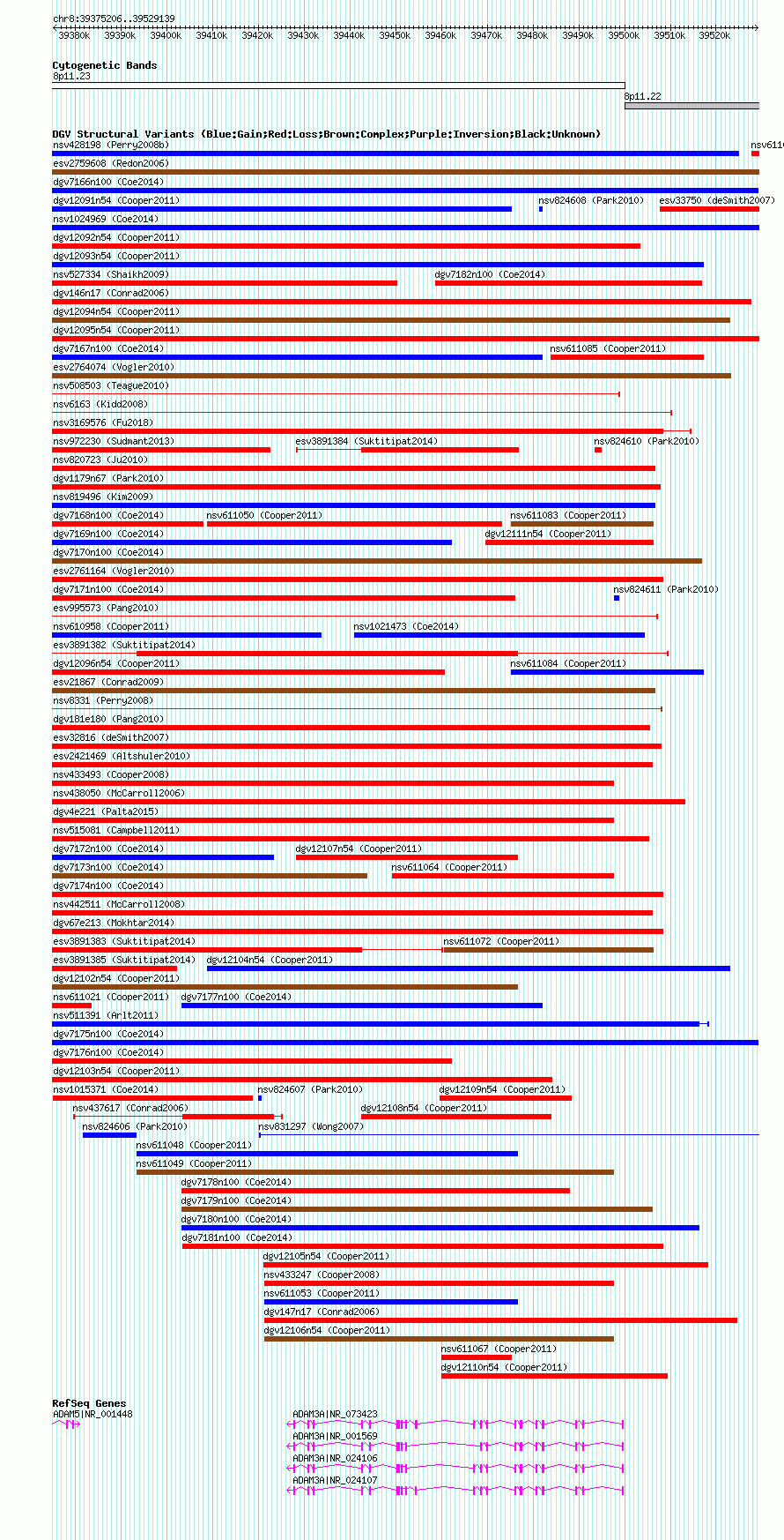Variant DetailsVariant: nsv1030298| Internal ID | 19119517 | | Landmark | | | Location Information | | | Cytoband | 8p11.22 | | Allele length | | Assembly | Allele length | | hg38 | 153934 | | hg19 | 153934 | | hg18 | 153934 |