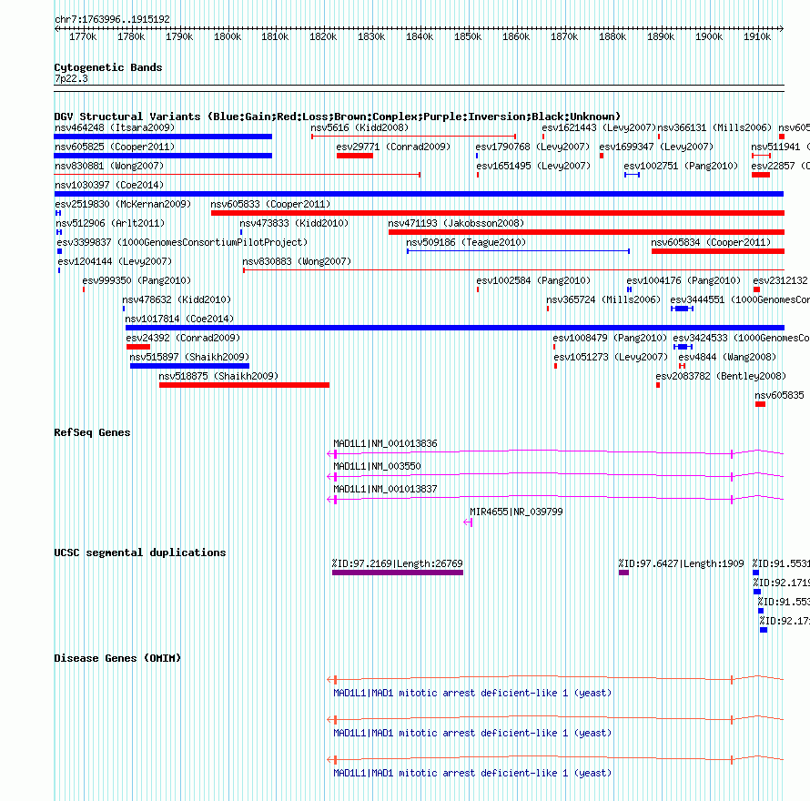 Variant DetailsVariant: nsv1030397| Internal ID | 18772928 | | Landmark | | | Location Information | | | Cytoband | 7p22.3 | | Allele length | | Assembly | Allele length | | hg38 | 151197 | | hg19 | 151197 | | hg18 | 151197 |