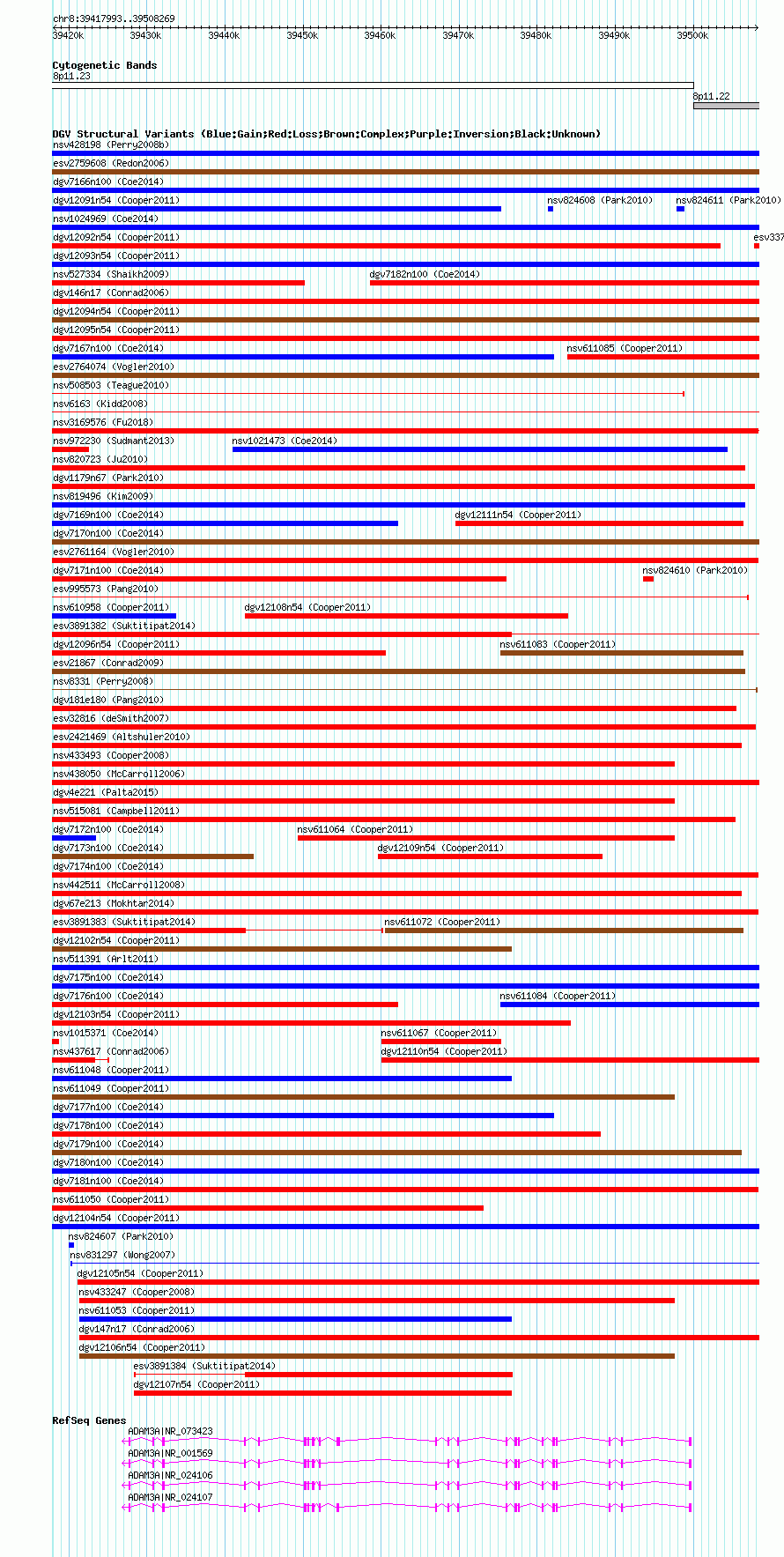 Variant DetailsVariant: nsv1030413| Internal ID | 19119632 | | Landmark | | | Location Information | | | Cytoband | 8p11.22 | | Allele length | | Assembly | Allele length | | hg38 | 90277 | | hg19 | 90277 | | hg18 | 90277 |