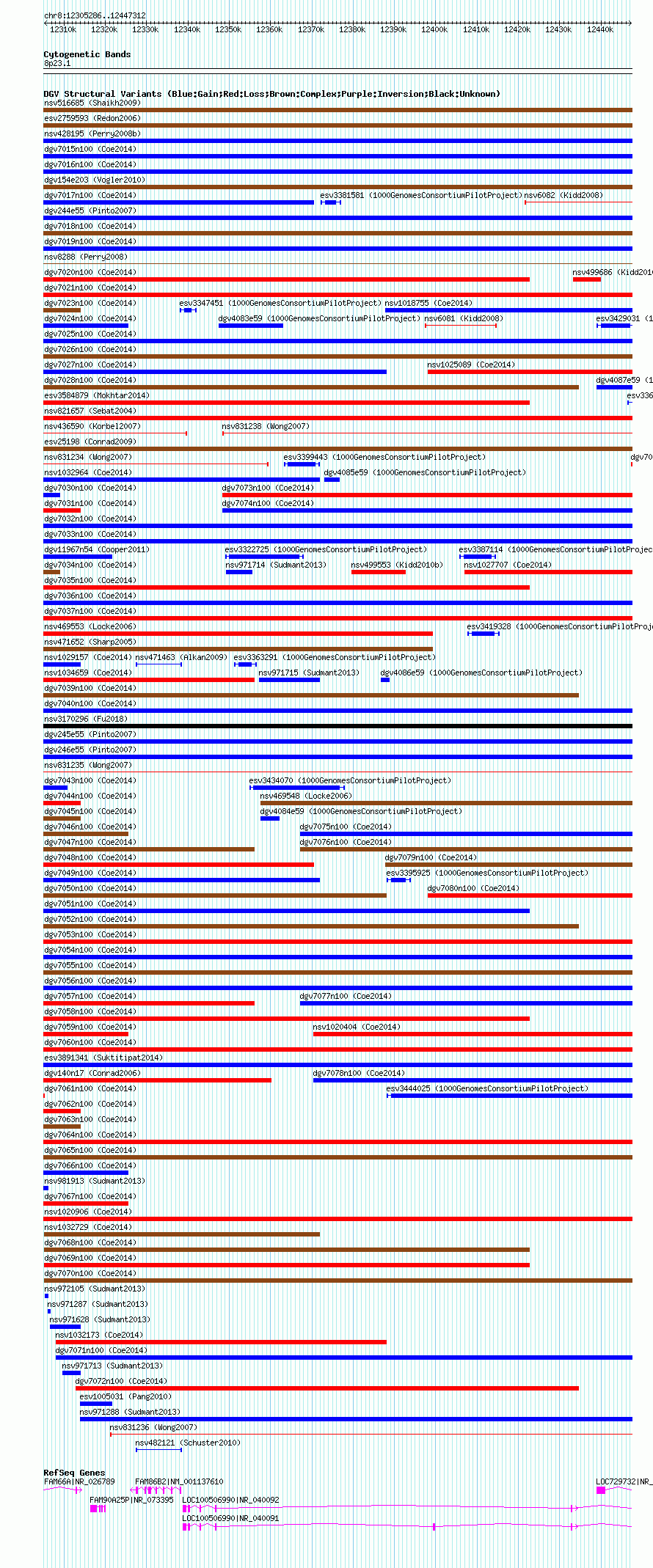 Variant DetailsVariant: nsv1030439| Internal ID | 19119658 | | Landmark | | | Location Information | | | Cytoband | 8p23.1 | | Allele length | | Assembly | Allele length | | hg38 | 142027 | | hg19 | 142027 | | hg18 | 142027 |