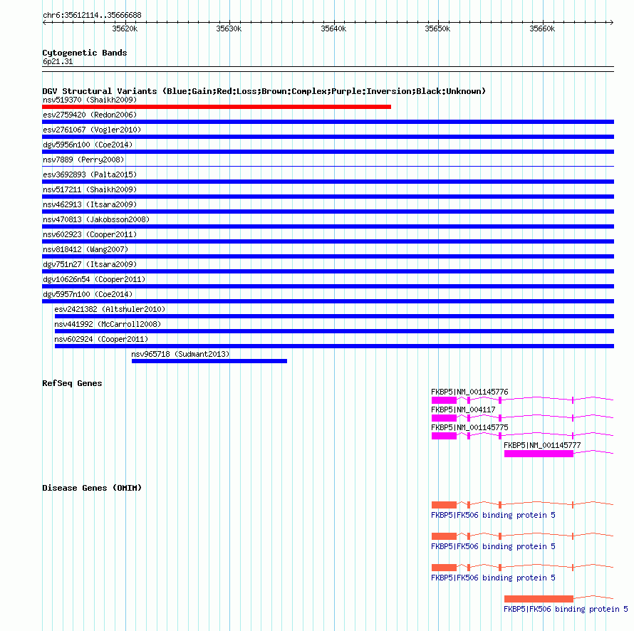 Variant DetailsVariant: nsv1030461| Internal ID | 19119680 | | Landmark | | | Location Information | | | Cytoband | 6p21.31 | | Allele length | | Assembly | Allele length | | hg38 | 54575 | | hg19 | 54575 | | hg18 | 54575 |