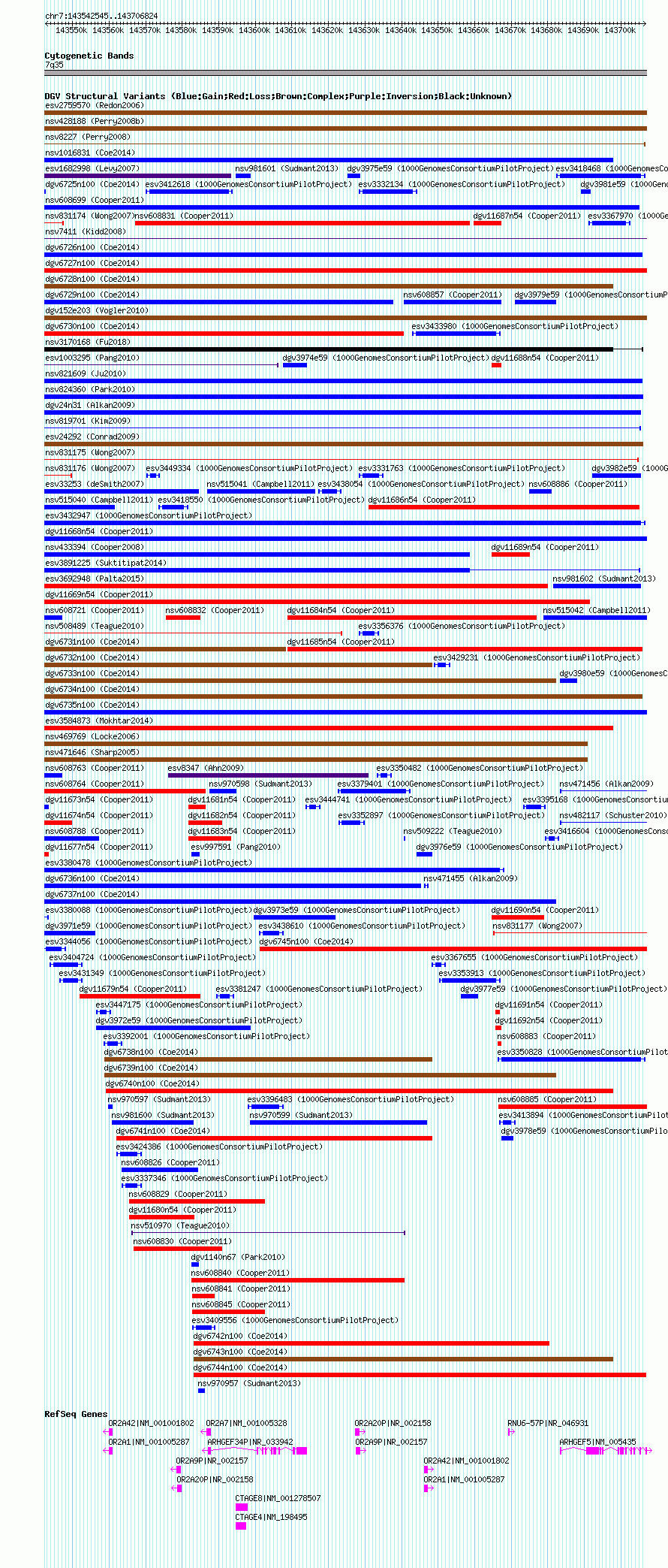 Variant DetailsVariant: nsv1030805| Internal ID | 19120024 | | Landmark | | | Location Information | | | Cytoband | 7q35 | | Allele length | | Assembly | Allele length | | hg38 | 164280 | | hg19 | 164280 | | hg18 | 164280 |