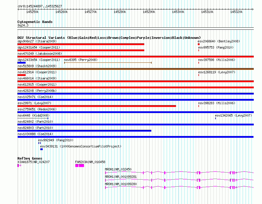 Variant DetailsVariant: nsv1030888| Internal ID | 19120108 | | Landmark | | | Location Information | | | Cytoband | 8q24.3 | | Allele length | | Assembly | Allele length | | hg38 | 80731 | | hg19 | 80731 | | hg18 | 80731 |