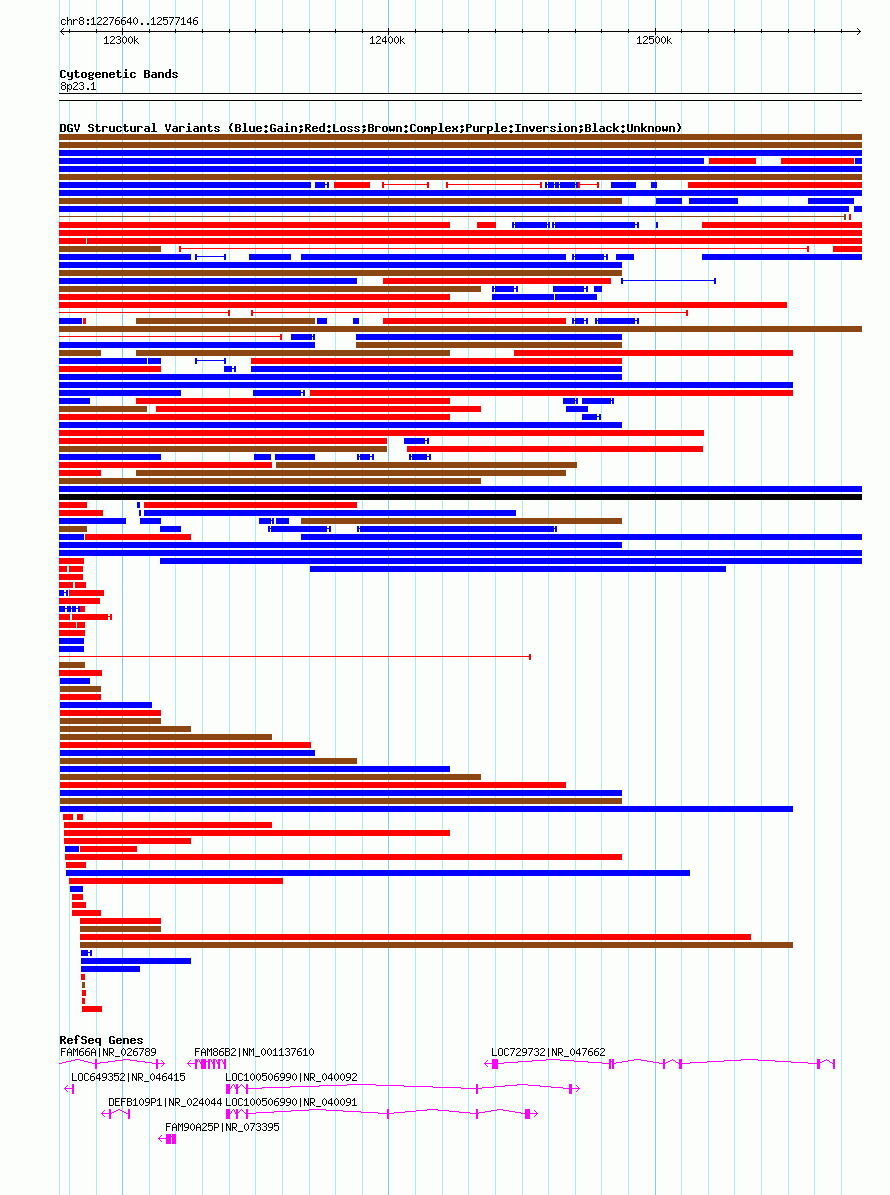Variant DetailsVariant: nsv1031210| Internal ID | 19120431 | | Landmark | | | Location Information | | | Cytoband | 8p23.1 | | Allele length | | Assembly | Allele length | | hg38 | 300507 | | hg19 | 300507 | | hg18 | 300507 |