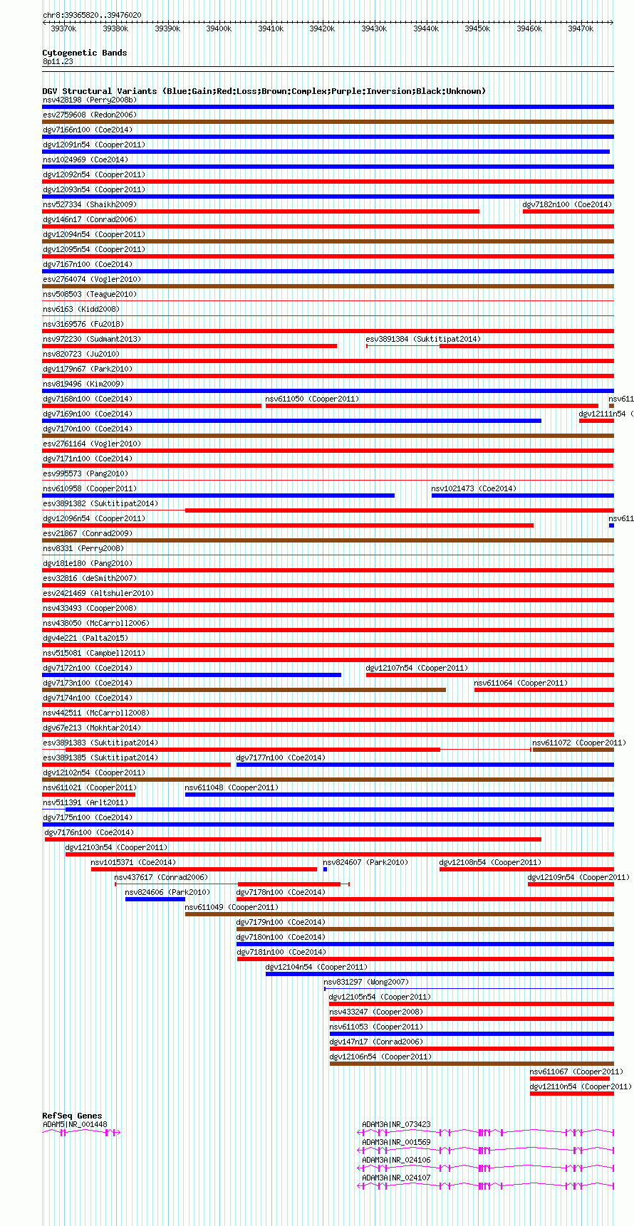 Variant DetailsVariant: nsv1031641| Internal ID | 19120863 | | Landmark | | | Location Information | | | Cytoband | 8p11.22 | | Allele length | | Assembly | Allele length | | hg38 | 110201 | | hg19 | 110201 | | hg18 | 110201 |