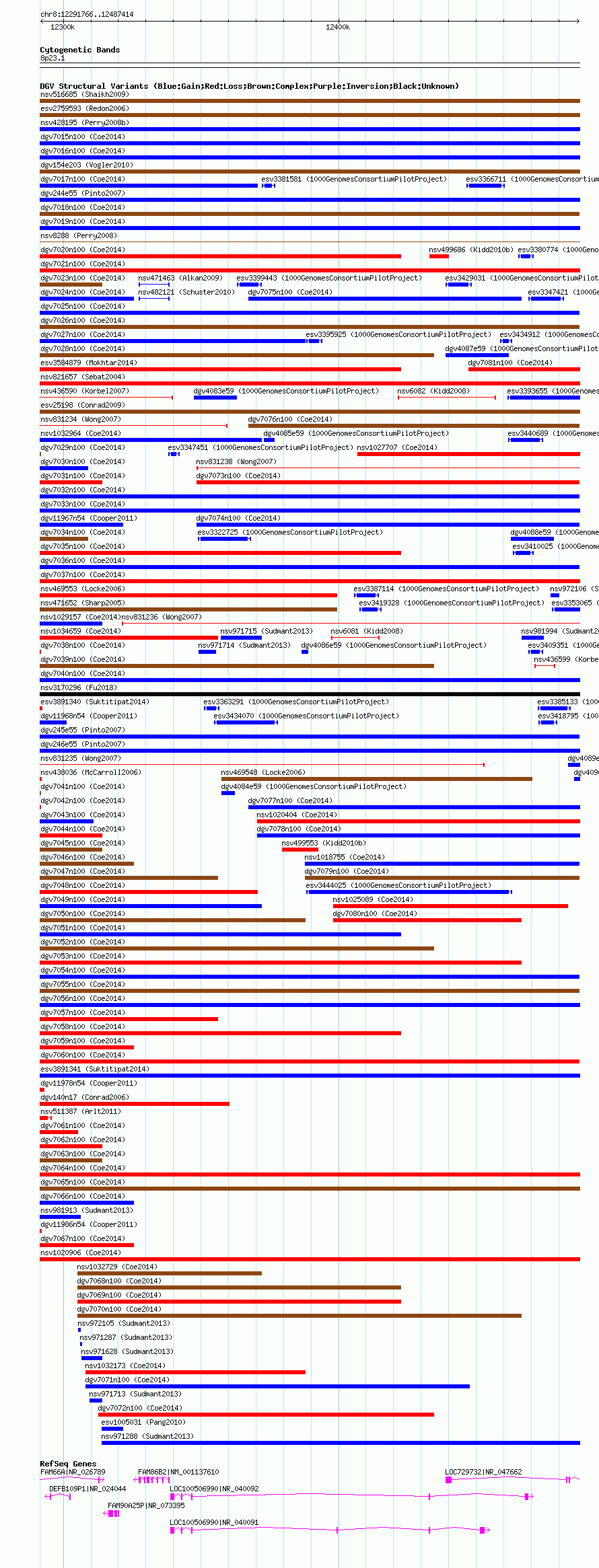 Variant DetailsVariant: nsv1031871| Internal ID | 19121093 | | Landmark | | | Location Information | | | Cytoband | 8p23.1 | | Allele length | | Assembly | Allele length | | hg38 | 195649 | | hg19 | 195649 | | hg18 | 195649 |