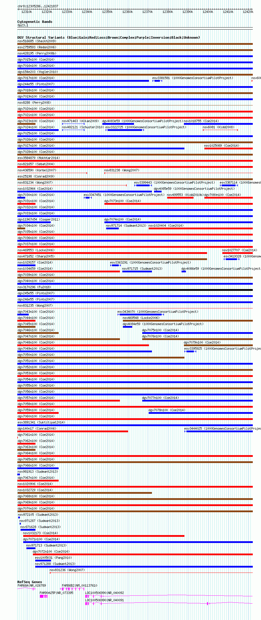 Variant DetailsVariant: nsv1031872| Internal ID | 19121094 | | Landmark | | | Location Information | | | Cytoband | 8p23.1 | | Allele length | | Assembly | Allele length | | hg38 | 116552 | | hg19 | 116552 | | hg18 | 116552 |