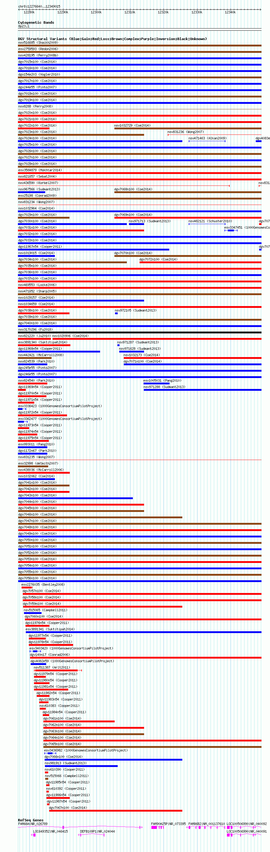 Variant DetailsVariant: nsv1032067| Internal ID | 19121289 | | Landmark | | | Location Information | | | Cytoband | 8p23.1 | | Allele length | | Assembly | Allele length | | hg38 | 72376 | | hg19 | 72376 | | hg18 | 72376 |