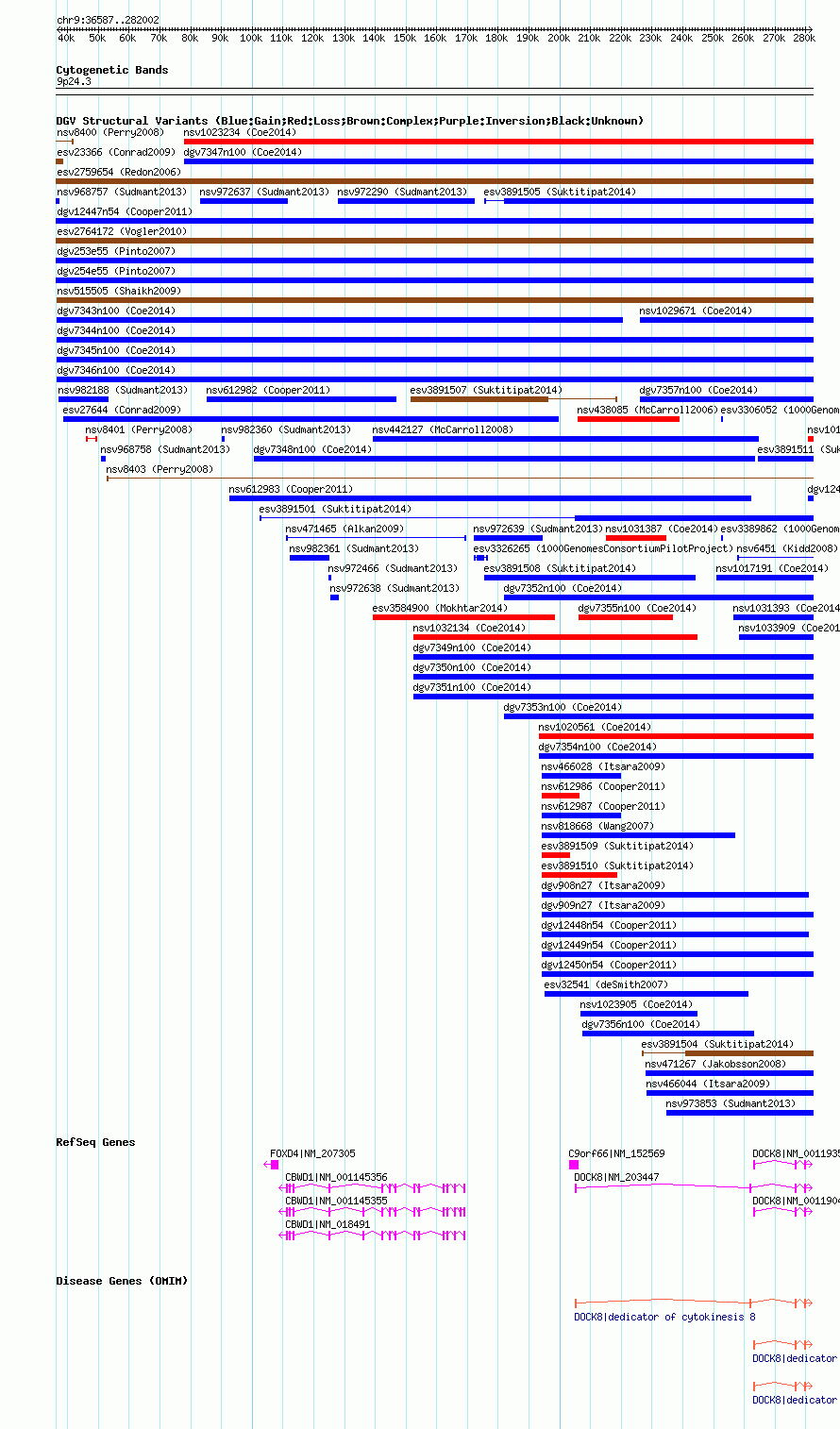 Variant DetailsVariant: nsv1032144| Internal ID | 19121366 | | Landmark | | | Location Information | | | Cytoband | 9p24.3 | | Allele length | | Assembly | Allele length | | hg38 | 245416 | | hg19 | 245416 | | hg18 | 245416 |