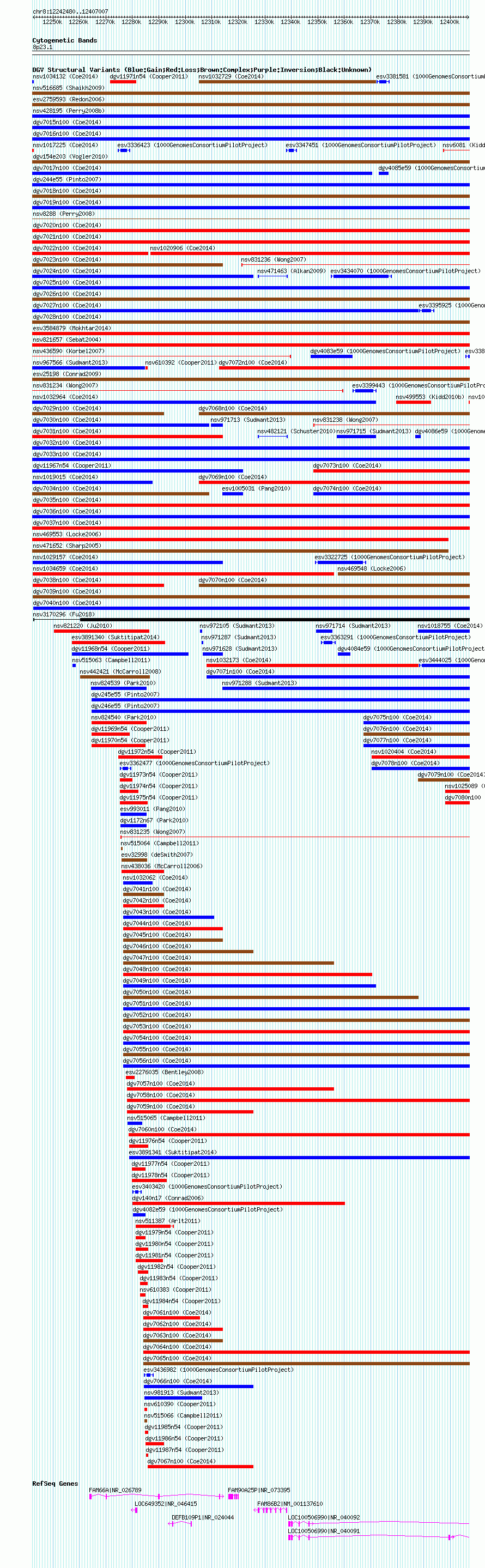 Variant DetailsVariant: nsv1032427| Internal ID | 19121649 | | Landmark | | | Location Information | | | Cytoband | 8p23.1 | | Allele length | | Assembly | Allele length | | hg38 | 164528 | | hg19 | 164528 | | hg18 | 164528 |