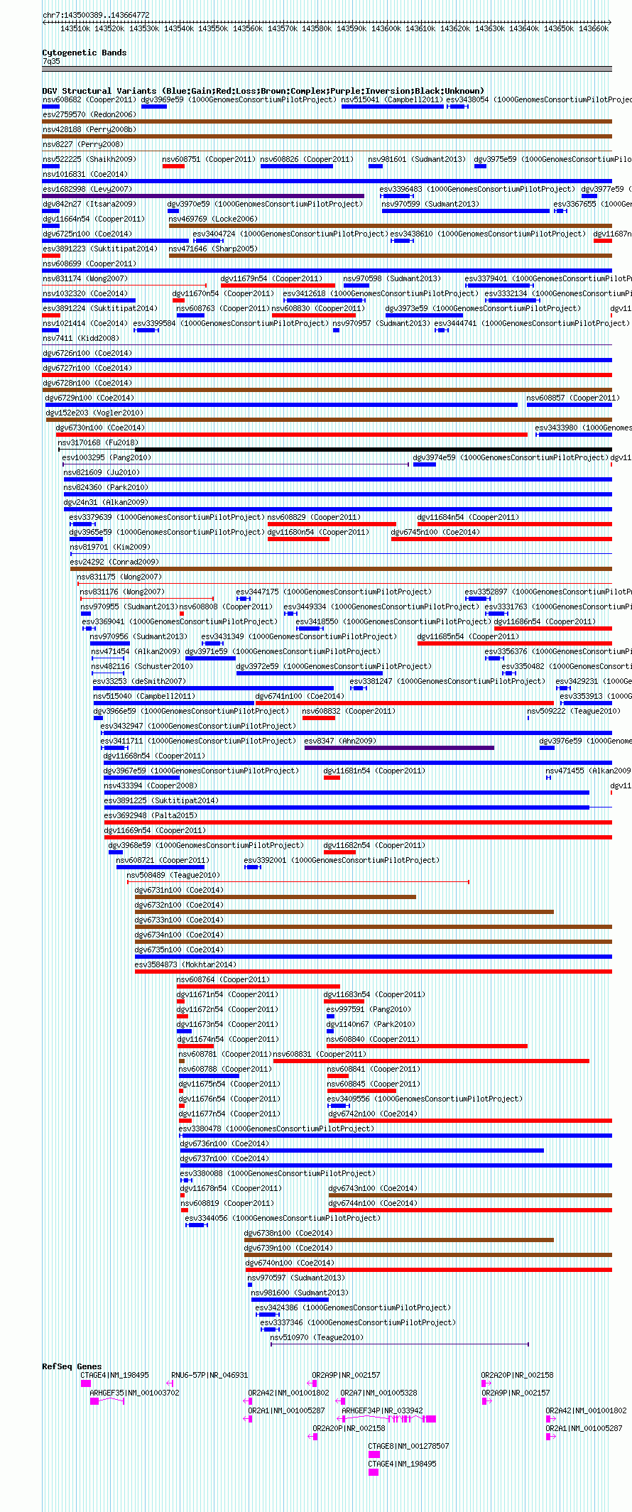 Variant DetailsVariant: nsv1032530| Internal ID | 19121752 | | Landmark | | | Location Information | | | Cytoband | 7q35 | | Allele length | | Assembly | Allele length | | hg38 | 164384 | | hg19 | 164384 | | hg18 | 164384 |