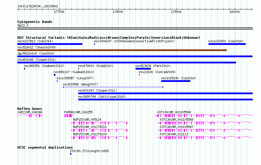 Known Genes | CAP2, FAM8A1, KIF13A, NUP153 |
