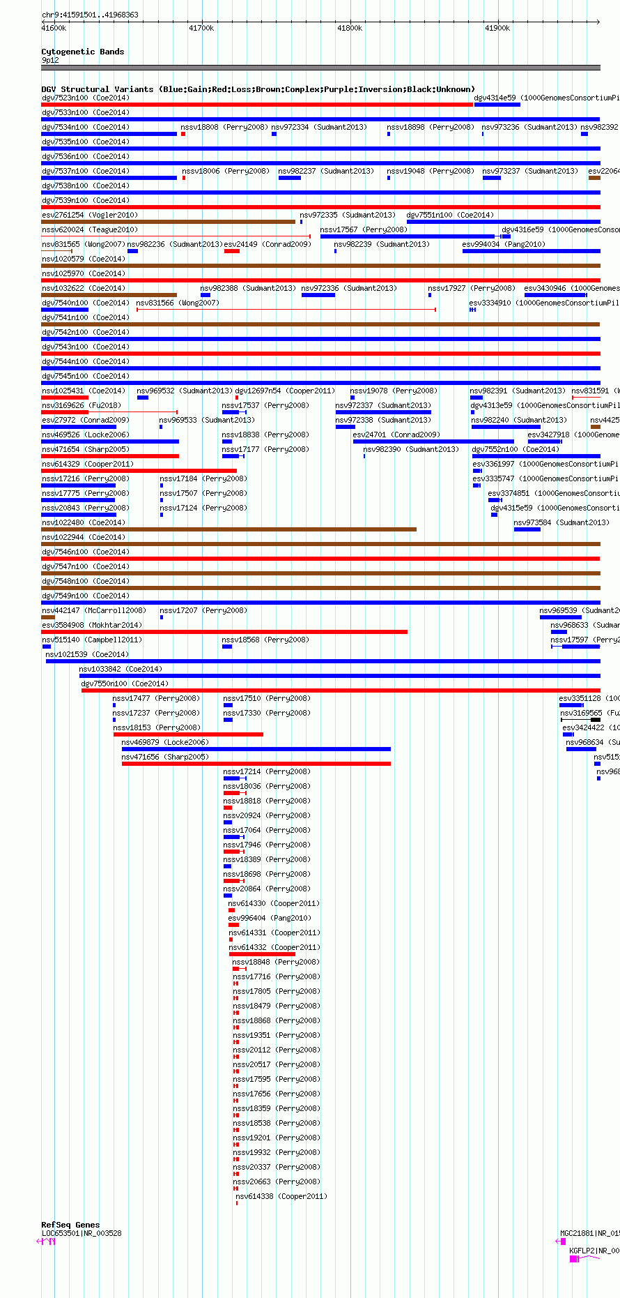 Variant DetailsVariant: nsv1033141| Internal ID | 19122363 | | Landmark | | | Location Information | | | Cytoband | 9p12 | | Allele length | | Assembly | Allele length | | hg38 | 376863 | | hg19 | 376863 | | hg18 | 376863 |