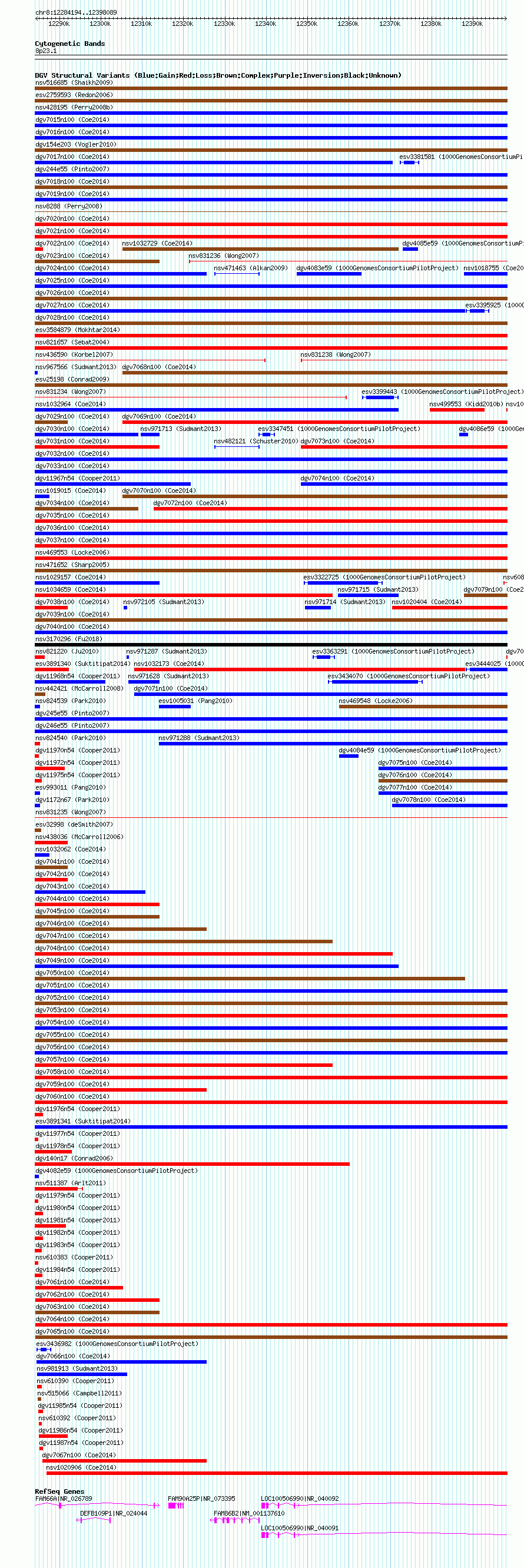 Variant DetailsVariant: nsv1033269| Internal ID | 19122491 | | Landmark | | | Location Information | | | Cytoband | 8p23.1 | | Allele length | | Assembly | Allele length | | hg38 | 113896 | | hg19 | 113896 | | hg18 | 113896 |