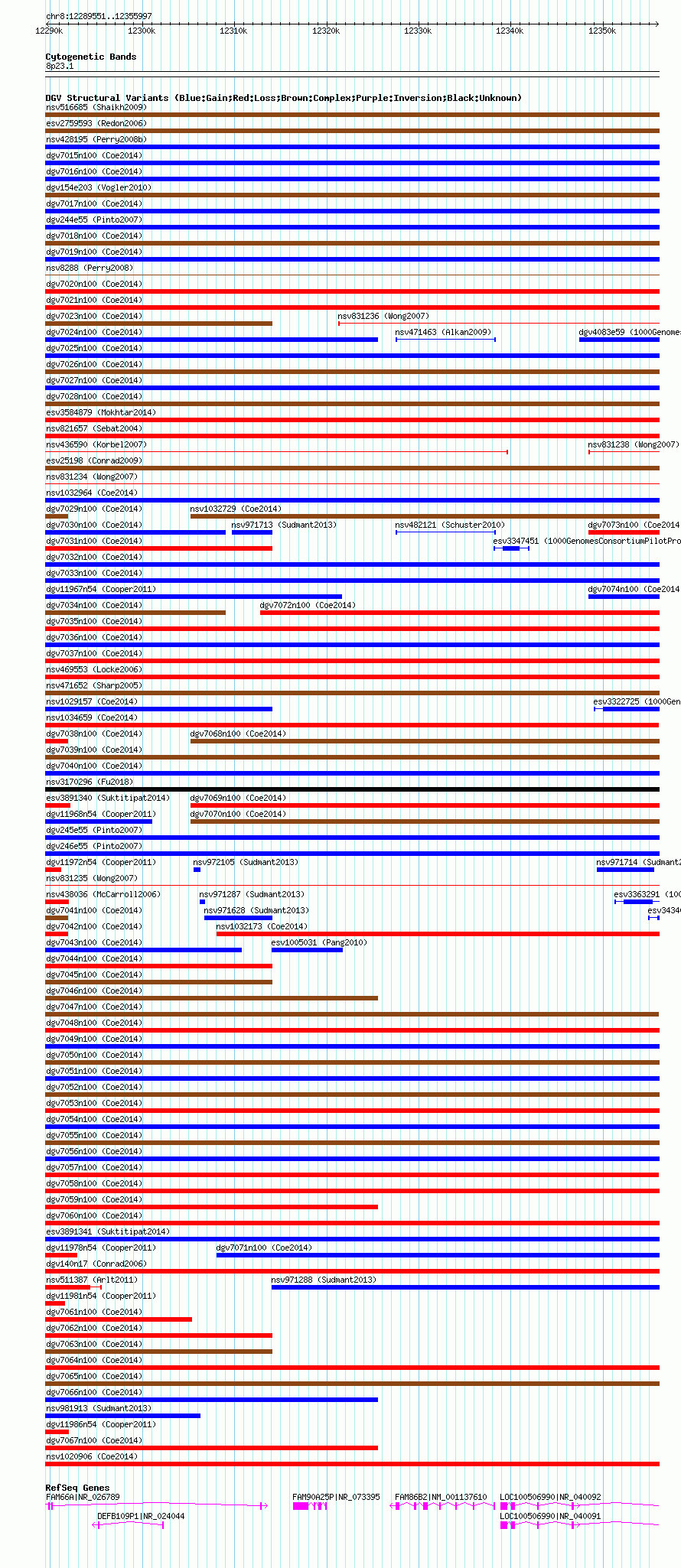 Variant DetailsVariant: nsv1033554| Internal ID | 19122775 | | Landmark | | | Location Information | | | Cytoband | 8p23.1 | | Allele length | | Assembly | Allele length | | hg38 | 66447 | | hg19 | 66447 | | hg18 | 66447 |