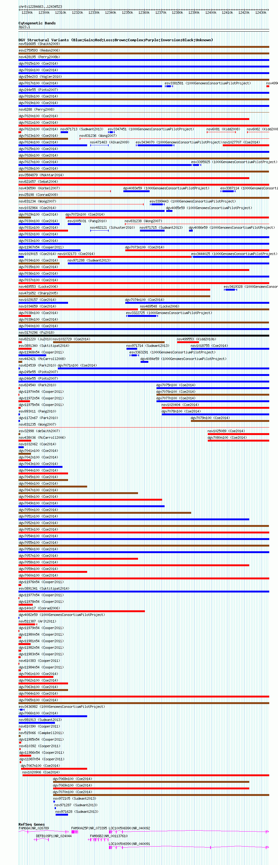 Variant DetailsVariant: nsv1033567| Internal ID | 19122788 | | Landmark | | | Location Information | | | Cytoband | 8p23.1 | | Allele length | | Assembly | Allele length | | hg38 | 149861 | | hg19 | 149861 | | hg18 | 149861 |