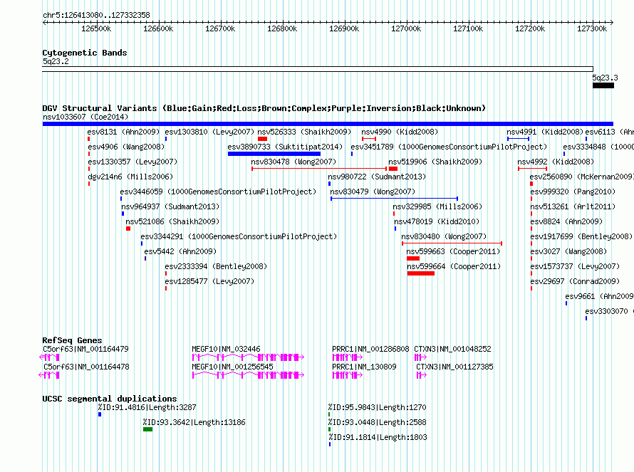 Known Genes | C5orf63, CTXN3, MEGF10, PRRC1 |