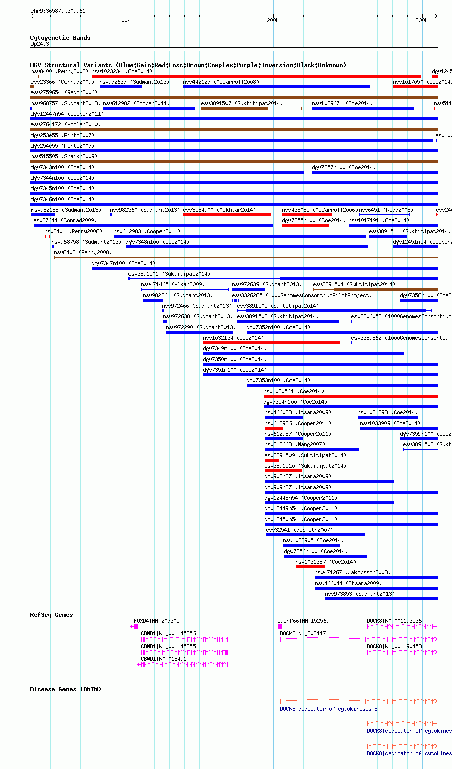 | Known Genes | C9orf66, CBWD1, DOCK8, FOXD4 |
