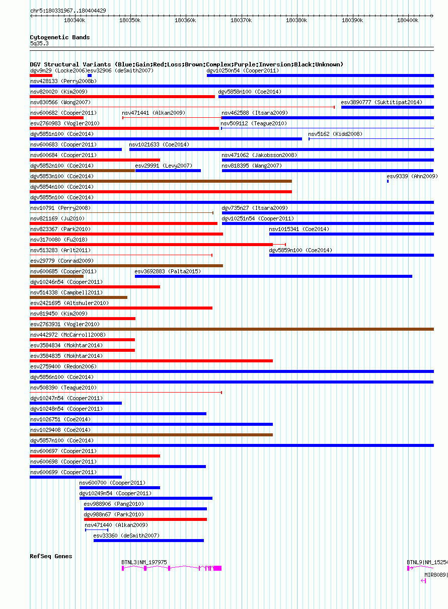 Variant DetailsVariant: nsv1033958| Internal ID | 19123180 | | Landmark | | | Location Information | | | Cytoband | 5q35.3 | | Allele length | | Assembly | Allele length | | hg38 | 72463 | | hg19 | 72463 | | hg18 | 72463 |