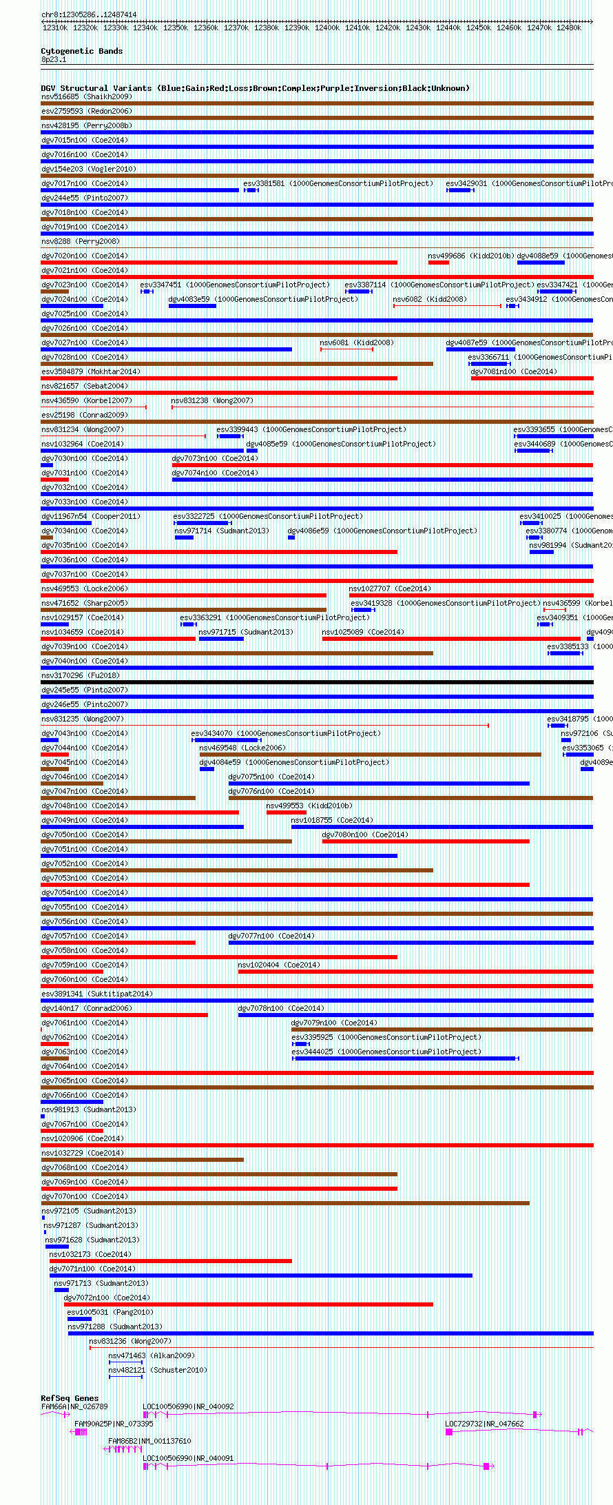 Variant DetailsVariant: nsv1034205 | Internal ID | 19123427 | | Landmark | | | Location Information | | | Cytoband | 8p23.1 | | Allele length | | Assembly | Allele length | | hg38 | 182129 | | hg19 | 182129 | | hg18 | 182129 |