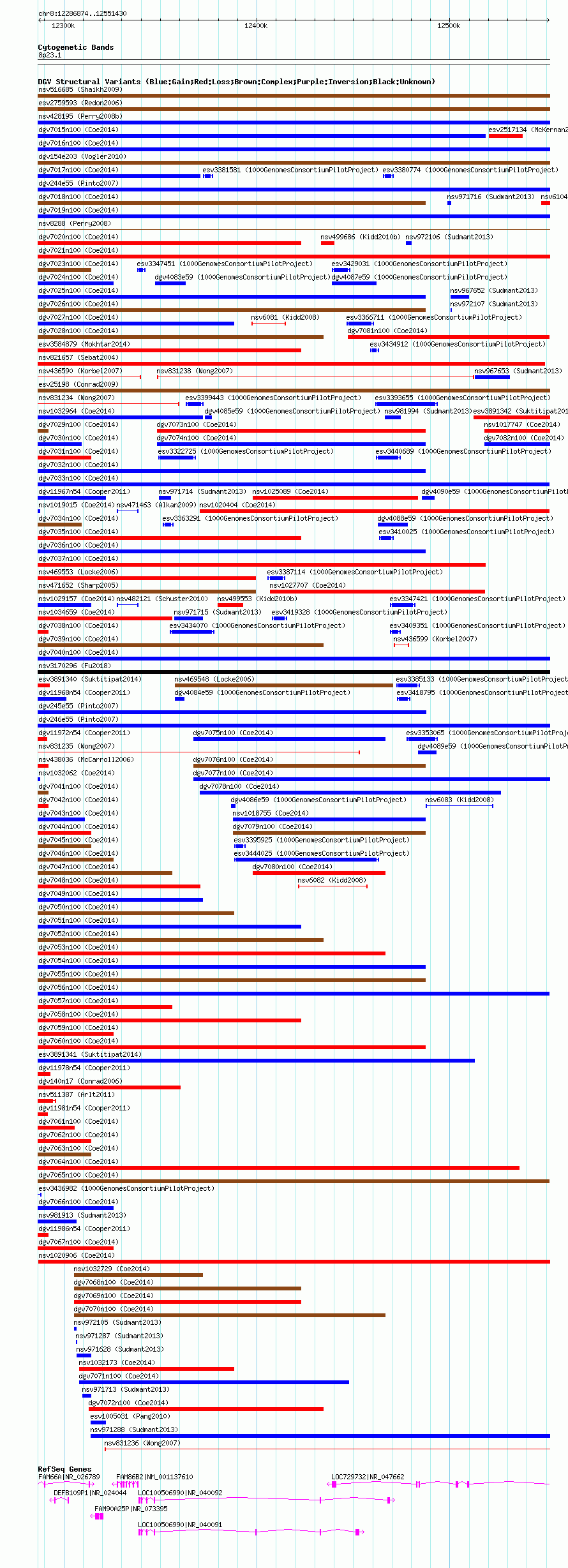 Variant DetailsVariant: nsv1034862| Internal ID | 19124082 | | Landmark | | | Location Information | | | Cytoband | 8p23.1 | | Allele length | | Assembly | Allele length | | hg38 | 264557 | | hg19 | 264557 | | hg18 | 264557 |