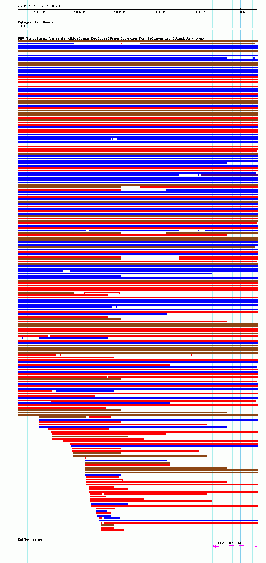 Variant DetailsVariant: nsv1035171| Internal ID | 19124390 | | Landmark | | | Location Information | | | Cytoband | 15q11.1 | | Allele length | | Assembly | Allele length | | hg38 | 59620 | | hg19 | 59620 | | hg18 | 59620 |
