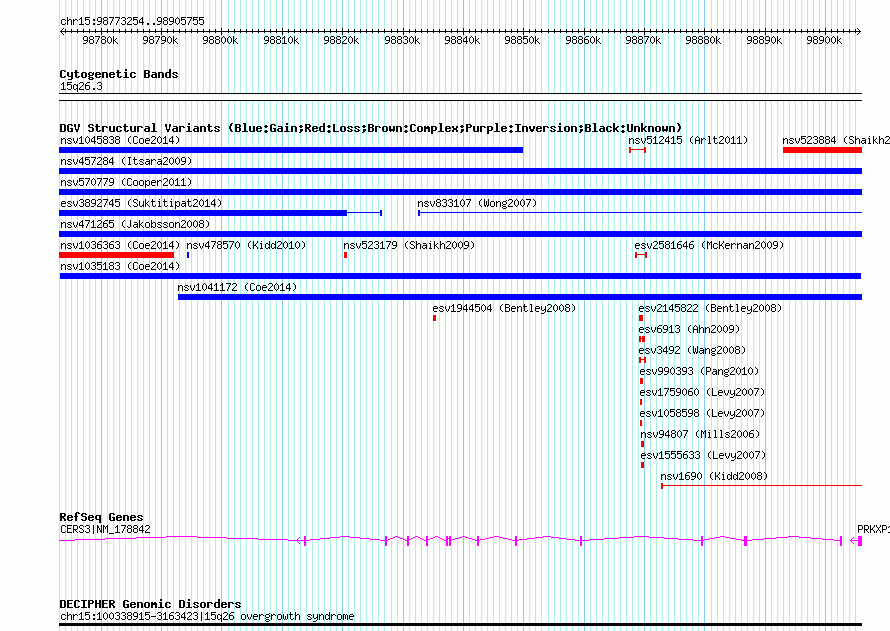 Variant DetailsVariant: nsv1035183| Internal ID | 19124402 | | Landmark | | | Location Information | | | Cytoband | 15q26.3 | | Allele length | | Assembly | Allele length | | hg38 | 132502 | | hg19 | 132502 | | hg18 | 132502 |