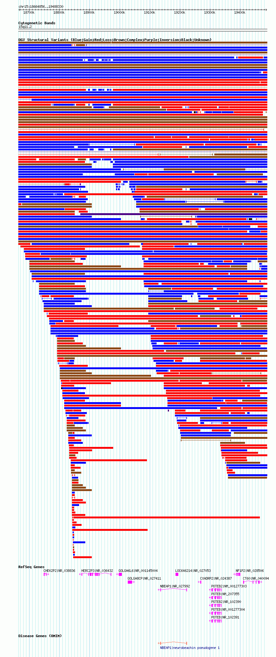Variant DetailsVariant: nsv1035200| Internal ID | 19124419 | | Landmark | | | Location Information | | | Cytoband | 15q11.1 | | Allele length | | Assembly | Allele length | | hg38 | 818754 | | hg19 | 818830 | | hg18 | 823475 |