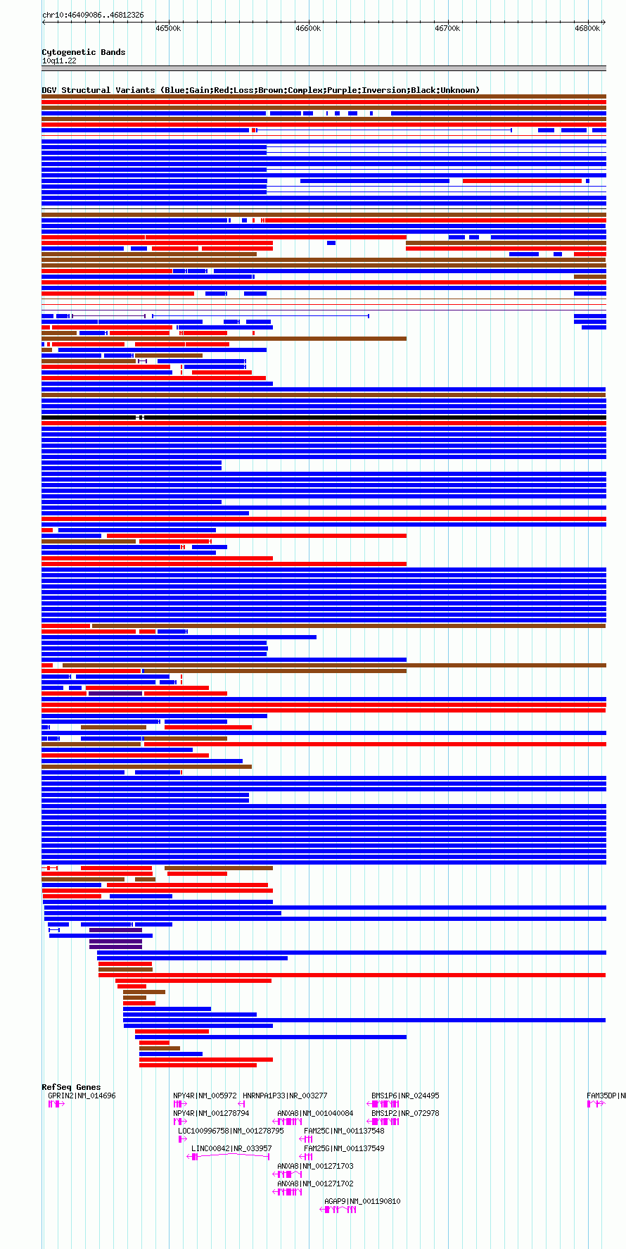 Variant DetailsVariant: nsv1035208| Internal ID | 19124427 | | Landmark | | | Location Information | | | Cytoband | 10q11.22 | | Allele length | | Assembly | Allele length | | hg19 | 403241 | | hg18 | 403241 |