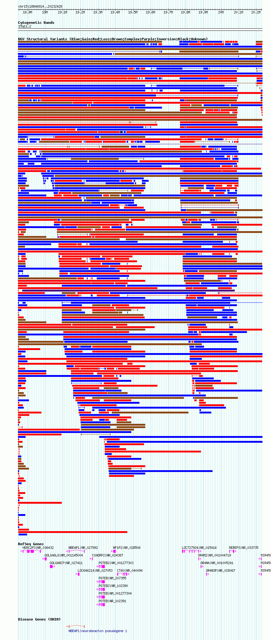 Variant DetailsVariant: nsv1035262| Internal ID | 19124481 | | Landmark | | | Location Information | | | Cytoband | 15q11.1 | | Allele length | | Assembly | Allele length | | hg38 | 1926596 | | hg19 | 2094165 | | hg18 | 1385515 |