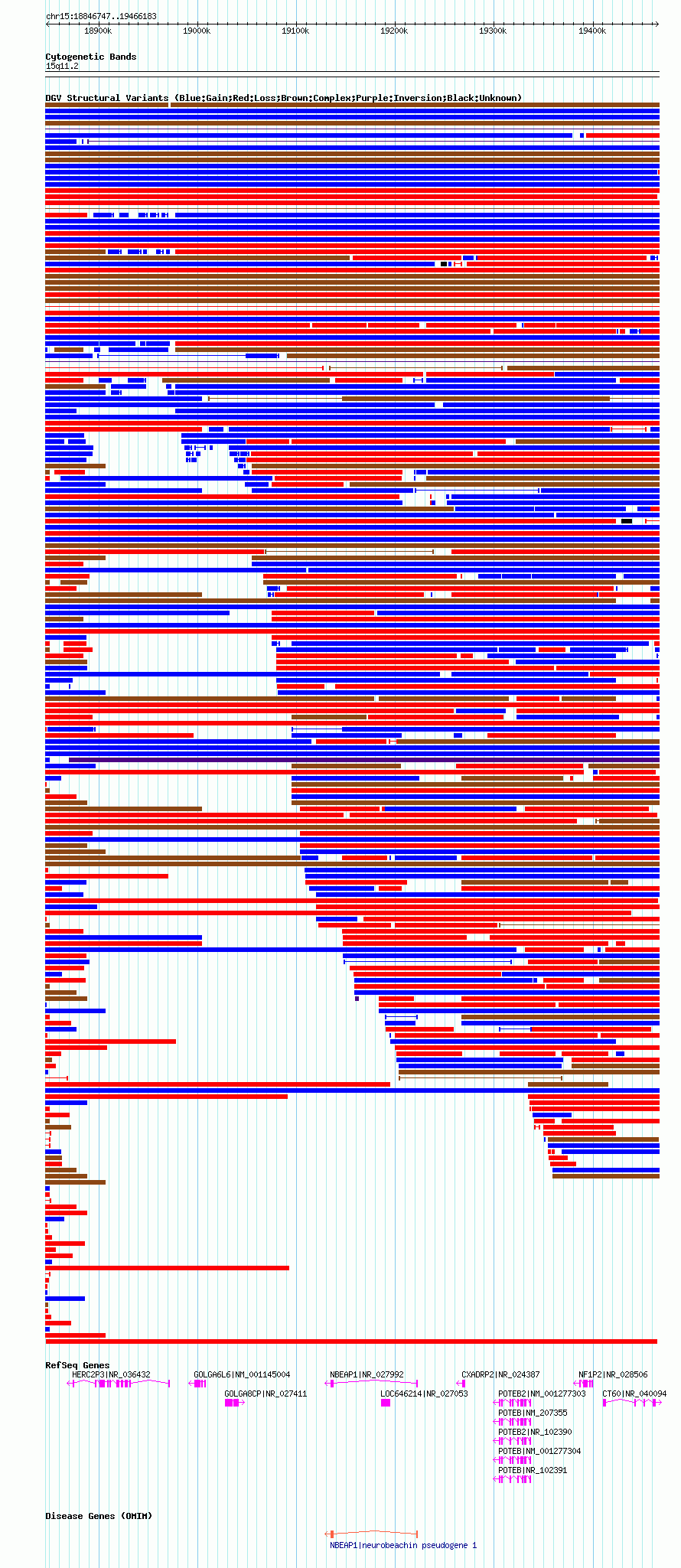Variant DetailsVariant: nsv1035483| Internal ID | 19124702 | | Landmark | | | Location Information | | | Cytoband | 15q11.1 | | Allele length | | Assembly | Allele length | | hg38 | 614716 | | hg19 | 614792 | | hg18 | 619437 |