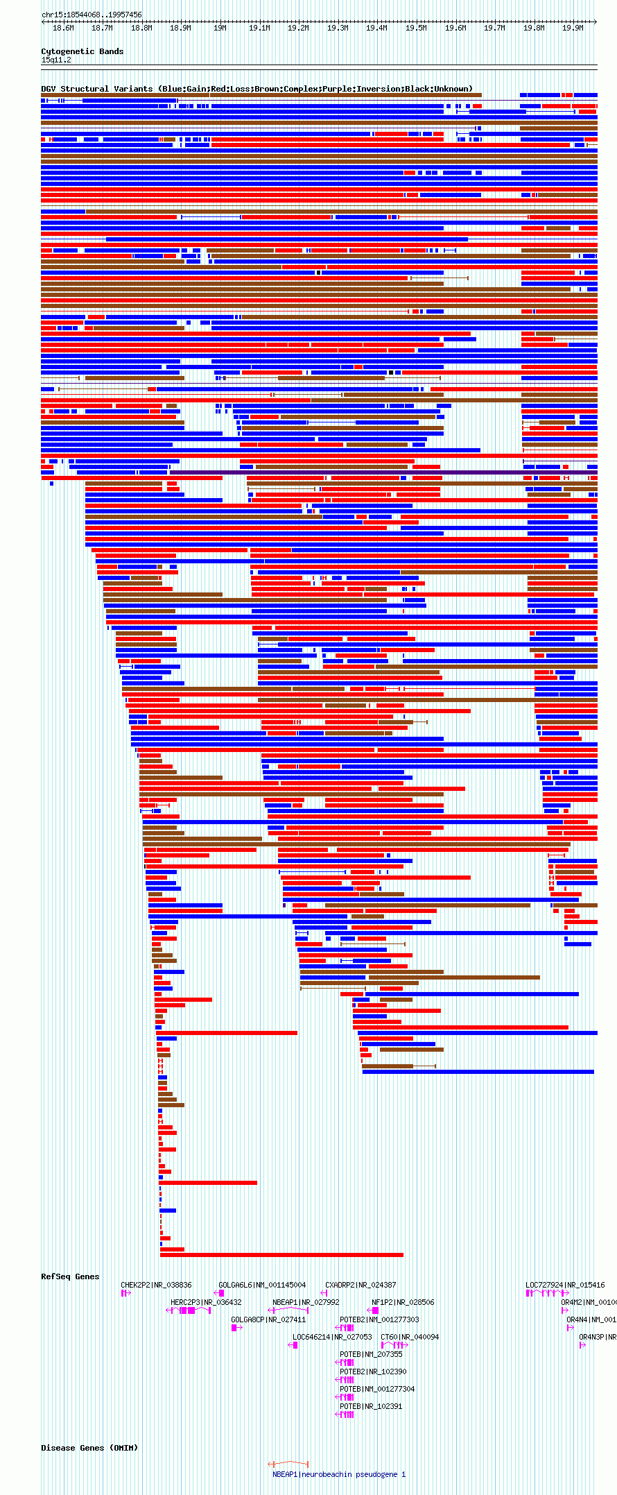 Variant DetailsVariant: nsv1035609| Internal ID | 19124828 | | Landmark | | | Location Information | | | Cytoband | 15q11.1 | | Allele length | | Assembly | Allele length | | hg38 | 2089341 | | hg19 | 2172039 | | hg18 | 1413389 |