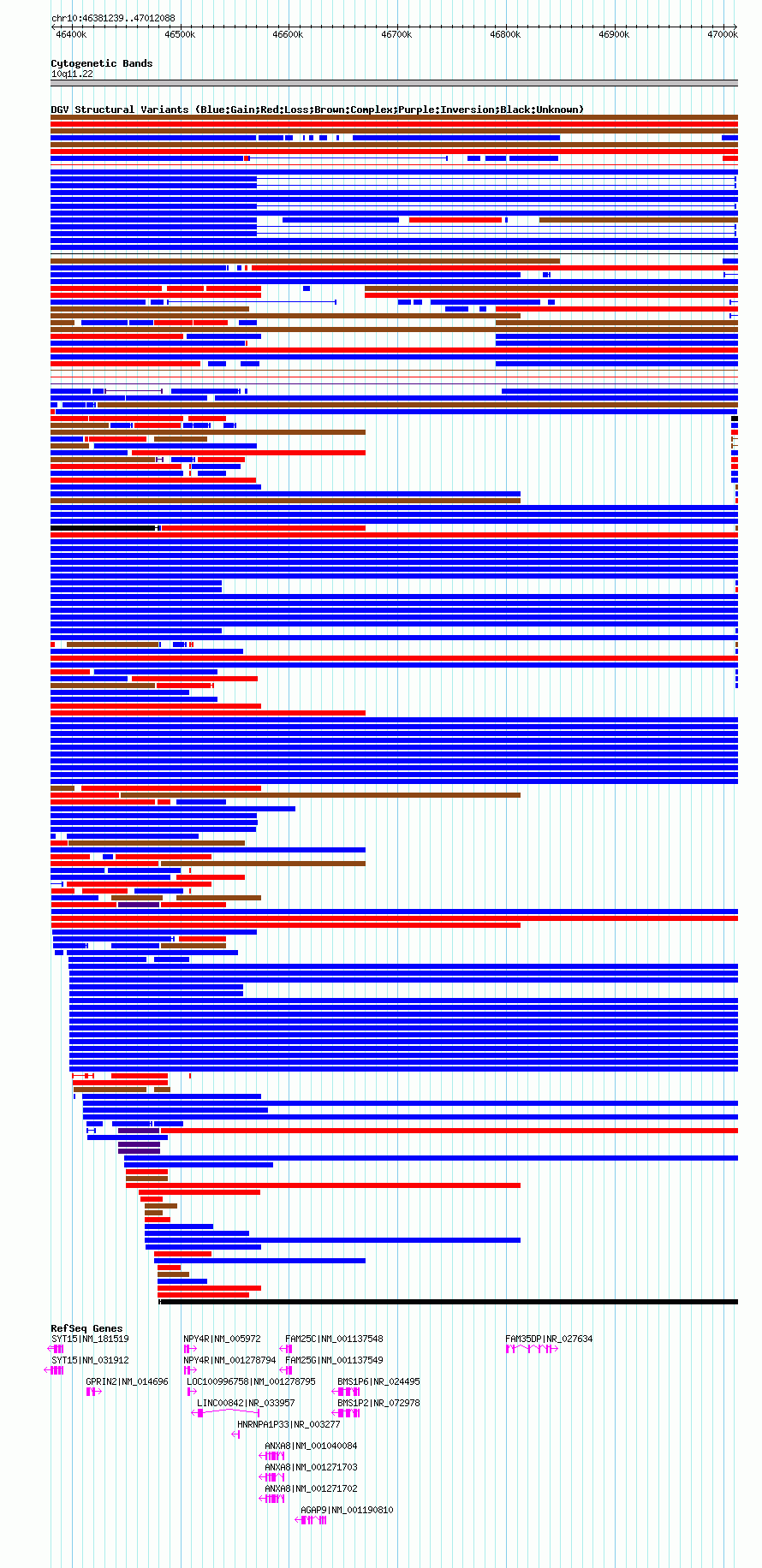 Variant DetailsVariant: nsv1035678| Internal ID | 19124897 | | Landmark | | | Location Information | | | Cytoband | 10q11.22 | | Allele length | | Assembly | Allele length | | hg19 | 580850 | | hg18 | 630850 |