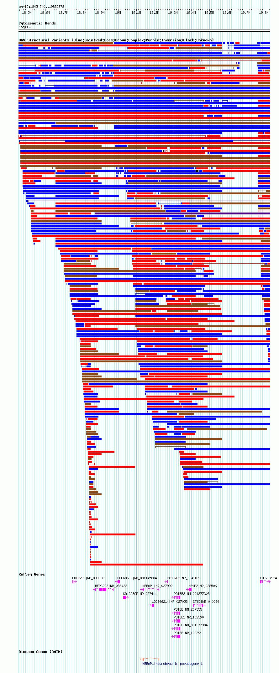 Variant DetailsVariant: nsv1035711| Internal ID | 19124930 | | Landmark | | | Location Information | | | Cytoband | 15q11.1 | | Allele length | | Assembly | Allele length | | hg38 | 2051591 | | hg19 | 2134289 | | hg18 | 1375639 |