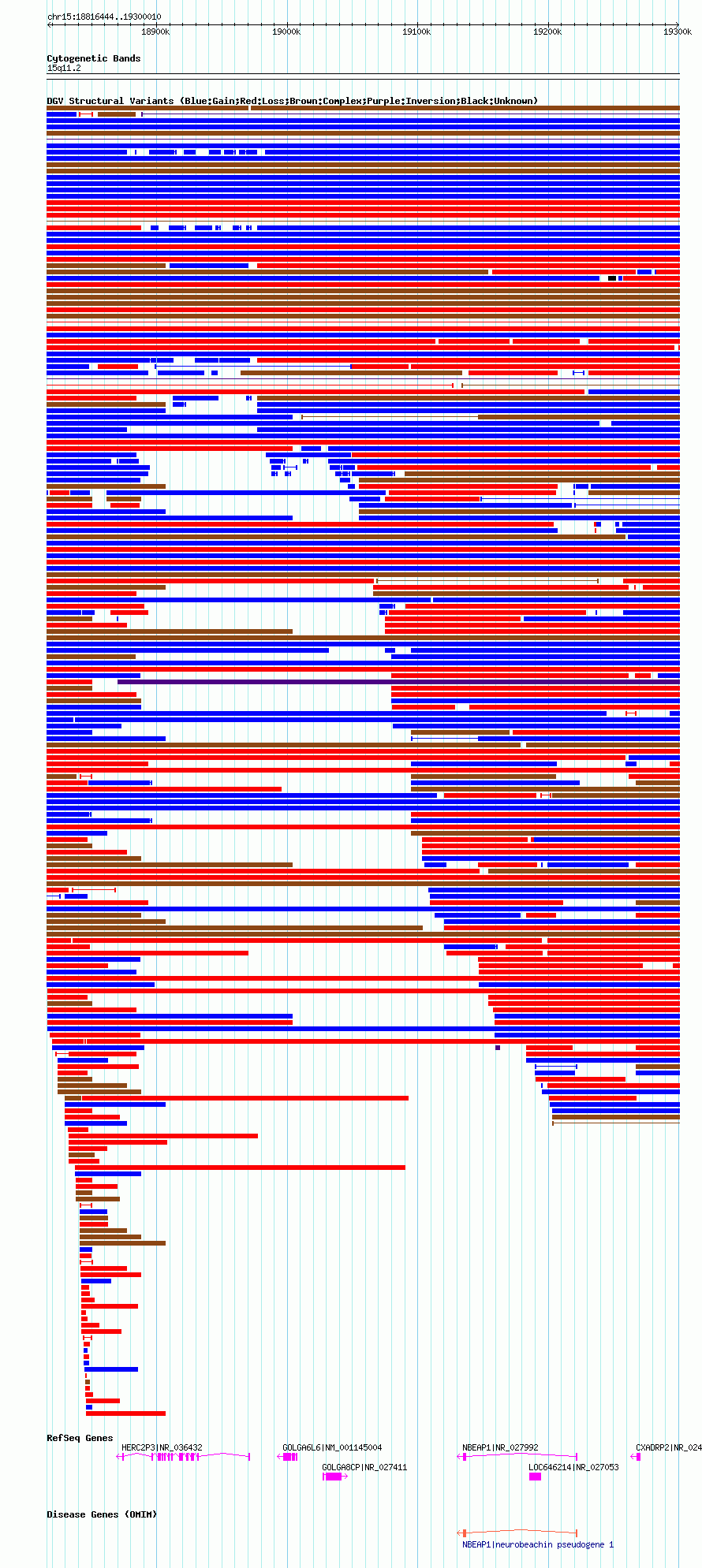 Variant DetailsVariant: nsv1035865| Internal ID | 19125084 | | Landmark | | | Location Information | | | Cytoband | 15q11.1 | | Allele length | | Assembly | Allele length | | hg38 | 478978 | | hg19 | 479054 | | hg18 | 483567 |