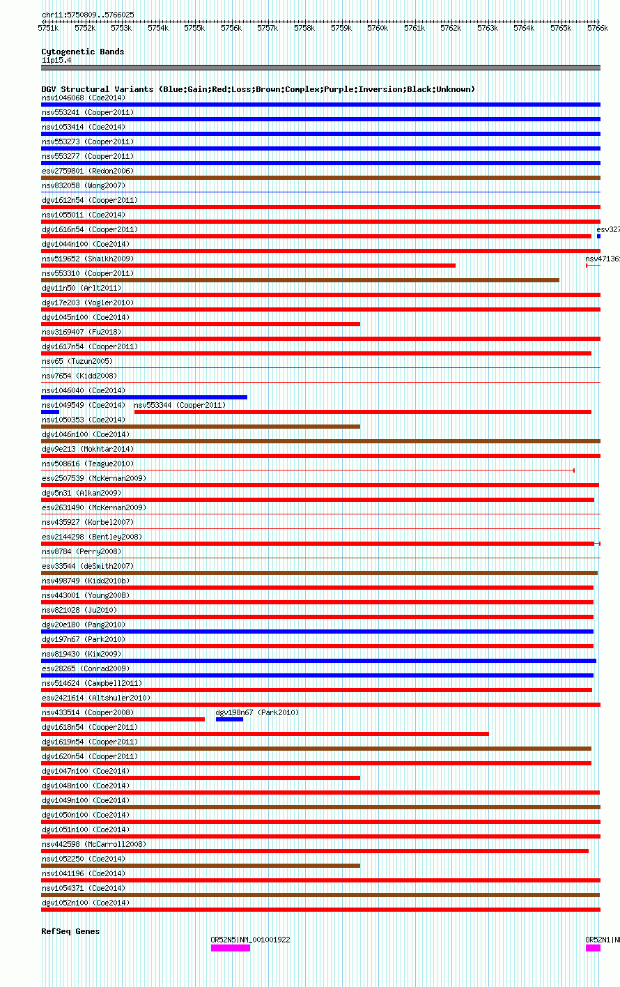 | | Variant Type | CNV loss | | Copy Number | | | Allele State | | | Allele Origin | | | Probe Count | | | Validation Flag | | | Merged Status | M | | Merged Variants | dgv1052n100 | | Supporting Variants | nssv3708489, nssv3509982, nssv3708490, nssv3511379, nssv3708482, nssv3708486, nssv3508661, nssv3517005, nssv3708479, nssv3708483, nssv3517902, nssv3513866, nssv3510190, nssv3708488, nssv3509219, nssv3708478, nssv3515242, nssv3513839, nssv3508030, nssv3504560, nssv3708480, nssv3510015, nssv3505840, nssv3504691, nssv3519341, nssv3519173, nssv3521858, nssv3515926, nssv3708485, nssv3708484, nssv3509421, nssv3504575, nssv3516962, nssv3520908, nssv3708477, nssv3708481, nssv3708491, nssv3505229, nssv3519007, nssv3513856, nssv3708487 | | Samples | | | Known Genes | OR52N1, OR52N5 | | Method | SNP array | | Analysis | Affymetrix SNP array copy number analysis | | Platform | Affymetrix SNP Array 6.0 | | Comments | | | Reference | Coe_et_al_2014 | | Pubmed ID | 25217958 | | Accession Number(s) | nsv1036066