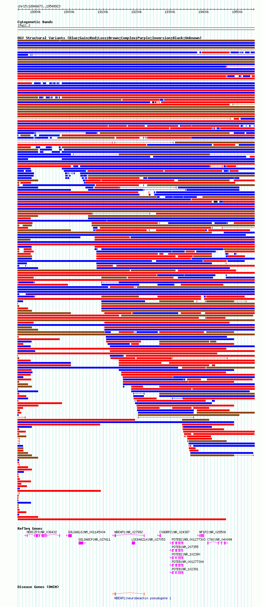 Variant DetailsVariant: nsv1036181| Internal ID | 19125400 | | Landmark | | | Location Information | | | Cytoband | 15q11.1 | | Allele length | | Assembly | Allele length | | hg38 | 697530 | | hg19 | 697606 | | hg18 | 702251 |