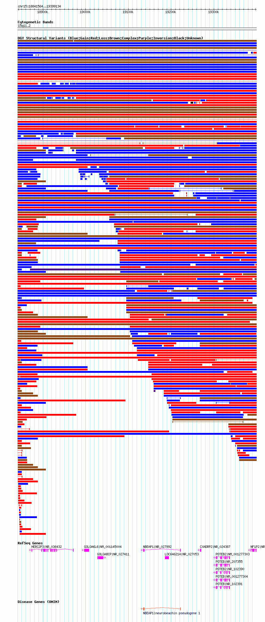 Variant DetailsVariant: nsv1036185| Internal ID | 19125404 | | Landmark | | | Location Information | | | Cytoband | 15q11.1 | | Allele length | | Assembly | Allele length | | hg38 | 552850 | | hg19 | 552926 | | hg18 | 557571 |
